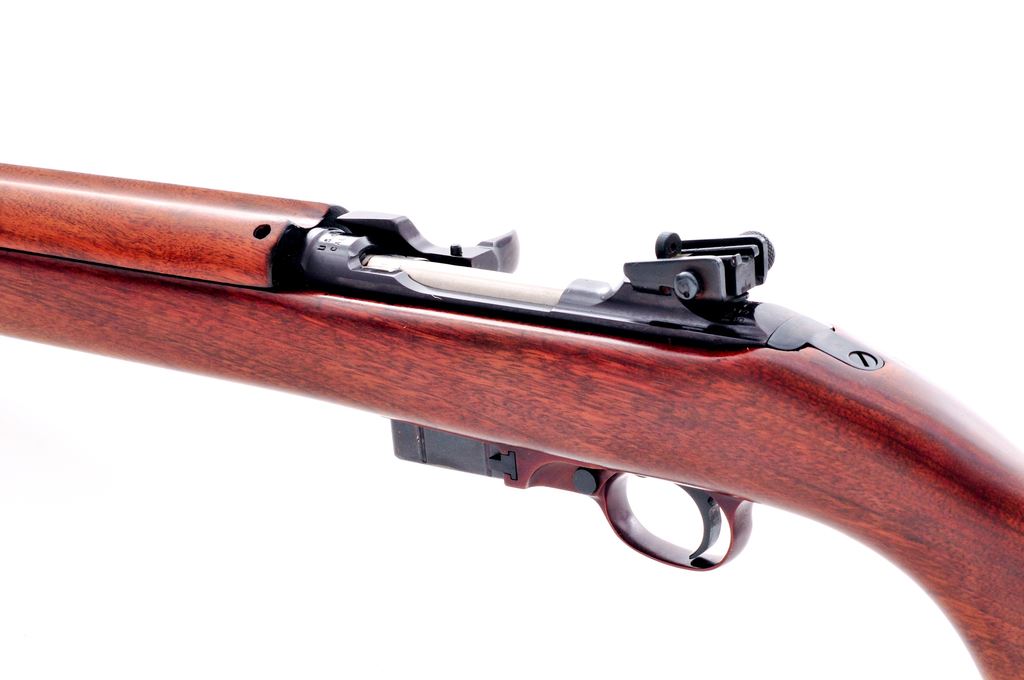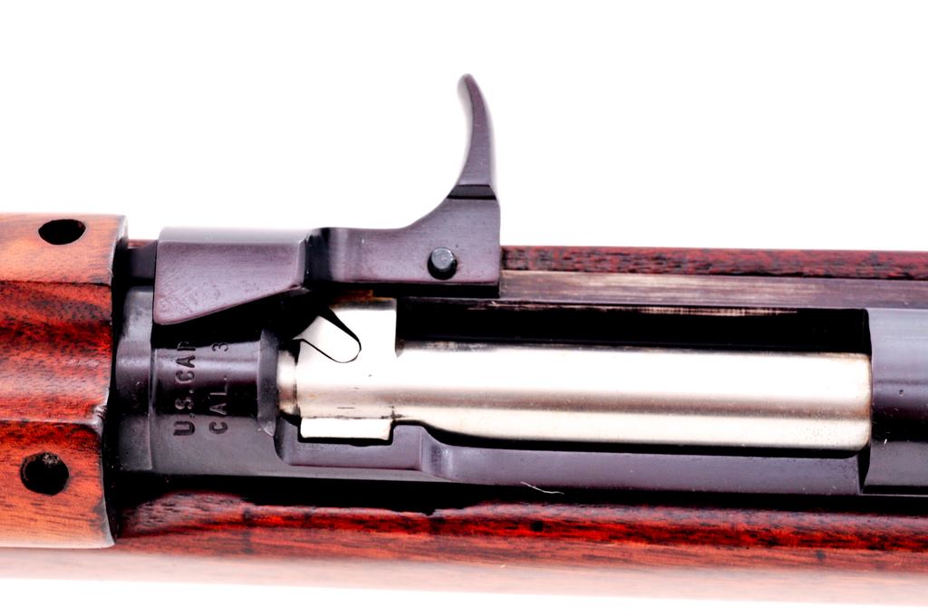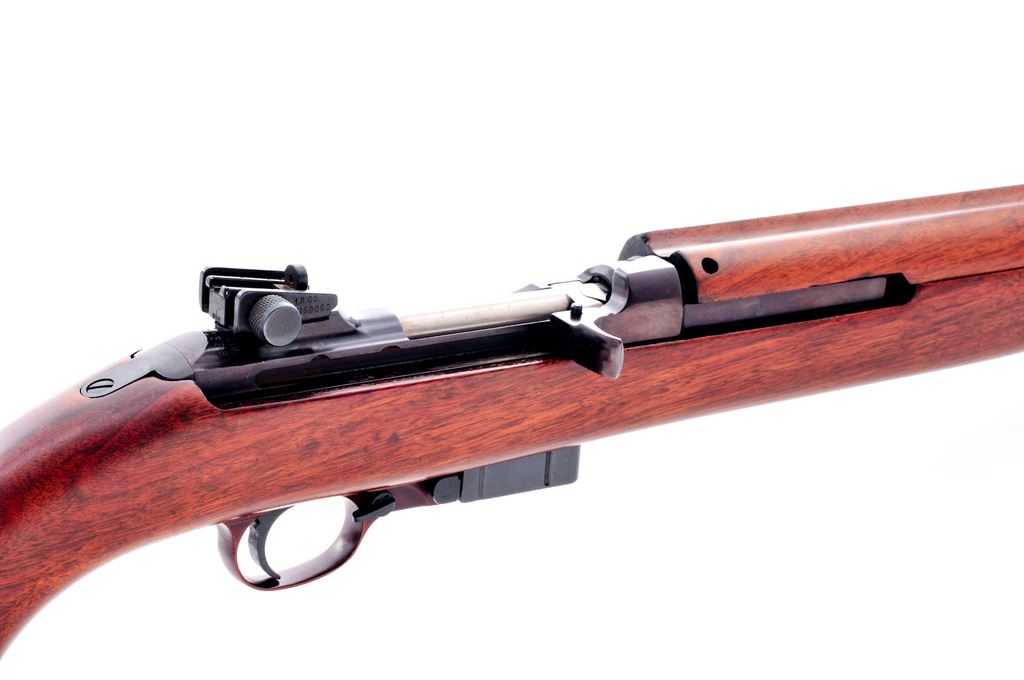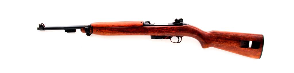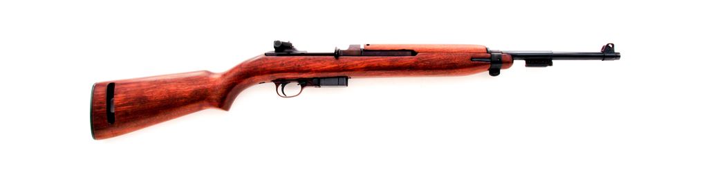Inland M1 Semi-Automatic Carbine, #5371528, .30 Carbine cal., 18'' barrel, blued finish, hardwood stock, blade front sight with protecting ears and aperture on ramp rear sight. Marked on chamber ''U.S.CARBINE CAL. 30 M1'', and on rear of receiver ''INLAND DIV.'' No visible markings on barrel. ''HI'' stamped in stock sling slot. One five-round magazine is included. Condition overall is fine as refinished with metal surfaces showing almost all of a dark reblue, along with scattered areas of light to moderate surface rust that may be a by-product of the reblue process. Trigger housing has a reddish finish and fits loosely in the slot. Stock has been sanded smooth and refinished to excellent condition with light handling marks at the toe. Bore is excellent with sharp rifling, bolt drags on closing but appears to lock up fully. Est.: $500-$700. (C&R)