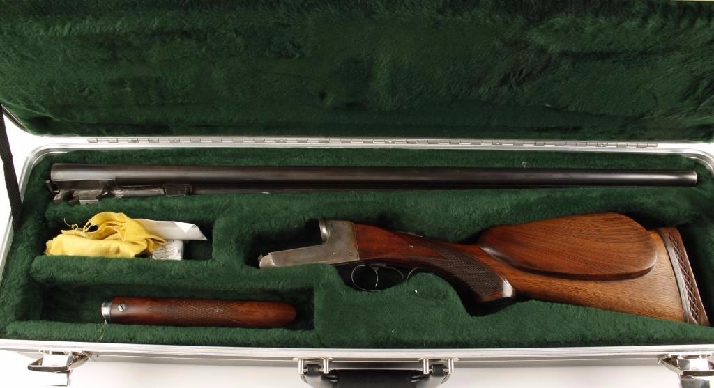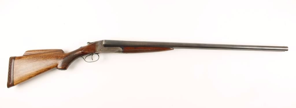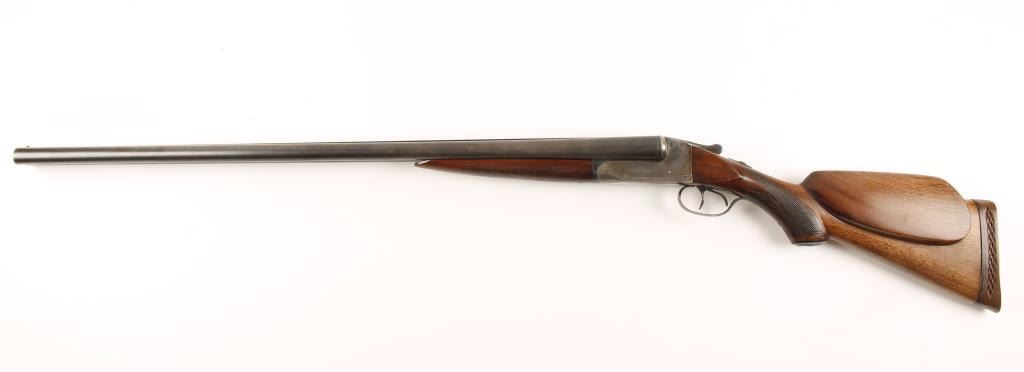 Standard grade side by side shotgun chambered for 12 Gauge shells, circa 1919. Features 30" blued barrels, serrated top rib, brass bead front sight, case hardened receiver, checkered top lever, safety switch, double triggers, checkered walnut forend and pistol grip shoulder stock with expertly added cheek rest & rubber recoil pad. Includes a SKB hard plastic plush lined & fitted carrying case with locking latches and keys. Barrels retain 60% finish with most wear above forearm from carrying. Receiver shows nice case colors mixed with a grey patina. Bores are bright, action is crisp and markings are sharp. Wood stocks are in excellent with the checkering worn smooth. Condition is fine as near antique. ***C&R Firearm*** ***Modern Firearm***