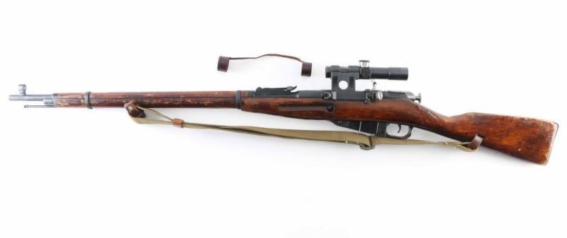 SN: R10964 Rifle. Bolt-Action. Produced 1891-1953. Russian Military issue. WW2 dated 1942. Izhevsk arsenal, imported by CAI. (Serial#, and import marks under scope mount on receiver.) Refurbished "Bent Bolt" sniper. ( in 2000, many surplus 91/30's were refurbished to "Target Rifles on order of the Central Design for Sporting, and Hunting Arms) Has the Triangle/arrow refurbish mark on receiver. Mounted with a Progress factory, 1942 dated PU Scope. with leather lens cover. Clear optics. Izhevsk scope mount. Fed from a non detachable 5-rd magazine. 29" barrel with hooded front post, u-notch, ladder, rear sights. Matched original serial numbers. Bore is a little dark, dirty, but rifling present.. Action is smooth/tight. Blued metal finish is about 80%. Wood stock/handguard have the typical numerous scratches/dings, and areas of loss to the varnish. Comes with original sling. NRA Condition-Good. C&R Firearm.