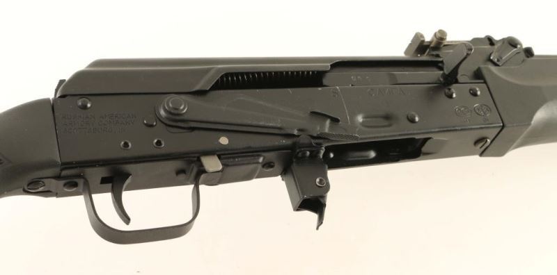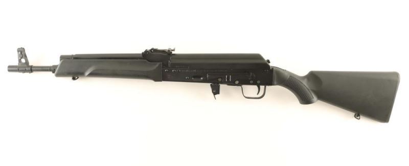 Russian made semi-automatic sporter variant of the AK rifle chambered in 7.62x39mm. Imported by the Russian American Armory Company of Scottsburg, I.N. with import stamp on the right side of the receiver. Features a matte black finish, 16.5" barrel, shrouded adjustable post front sight, tangent rear sight graduated to 300 meters, stamped receiver with side mounted scope rail, smooth trigger, manual safety, bolt hold open, sling swivels, no magazine, contoured black synthetic forend, and checkered pistol grip shoulder stock. Rifle retains approximately 98% of it's original finish showing minor wear. Action is smooth, bore is pristine, and polymer stocks are fine. Condition is NRA excellent. ***Modern Firearm***