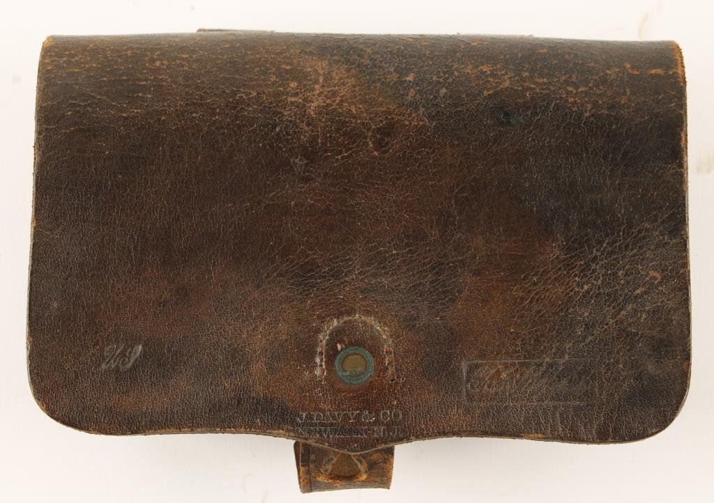 J.Davy Co. .36 Caliber Cartridge Box. This Civil War era cartridge box was for .36 caliber combustible cartridges. Cartouche on front flap of ordinance sub-inspector Shephard. Condition: The condition of this cartridge box is overall good with some flaking. EST.: $250-$500