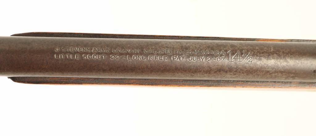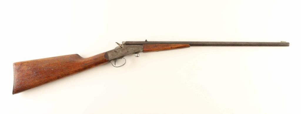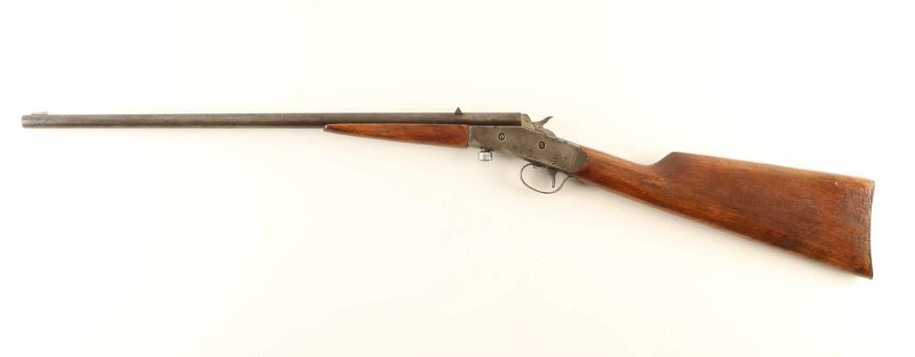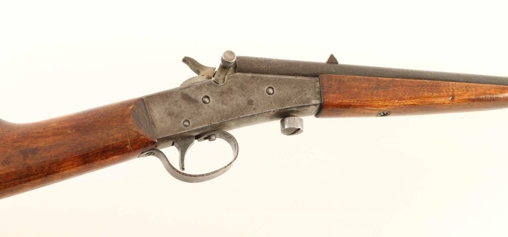 Manufactured circa 1911-1941. Single shot falling block action rimfire rifle features 20" barrel with fixed sights, exposed hammer, takedown screw under action. Bore is good condition, frosted, with strong rifling. Metal parts have a mottled gray and brown color, with bare metal showing on edges and corners. Barrel is mostly brown with thin even patina. Wood is good condition, varnished, with scrapes and dings. Forend is a bit loose. Markings on barrel are crisp. Condition is NRA Good + *** C&R Firearm ***