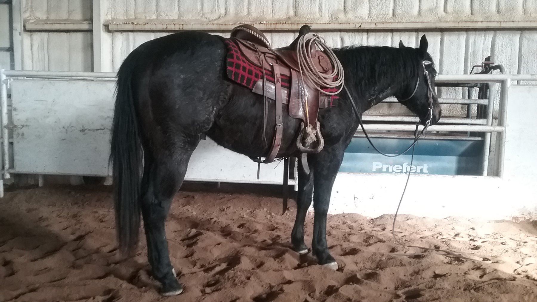 JB is a blue roan registered qh gelding. Stands 15hh. He was my personal riding horse the last 6 mo. Rode him to town and to church. Been around cattle on the ranch. Pulls good from the horn. Not spooky. Rides out alone or with others. Great calm personallaty. Good to catch. Load Absolutely no buck. Quiet. Gentle and Sound