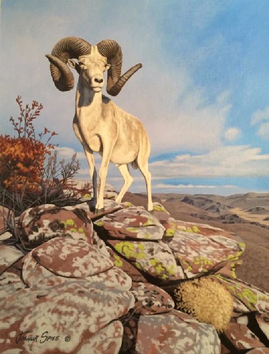 Joshua Spies graduated from South Dakota State University in 1996 with a degree in Fine Arts. His list of awards and recognitions is extensive, including Artist of the Year award for both Dallas Safari Club and Safari Club International and the appearance of his paintings in two major motion pictures. Here is your opportunity to own this ORIGINAL painting!