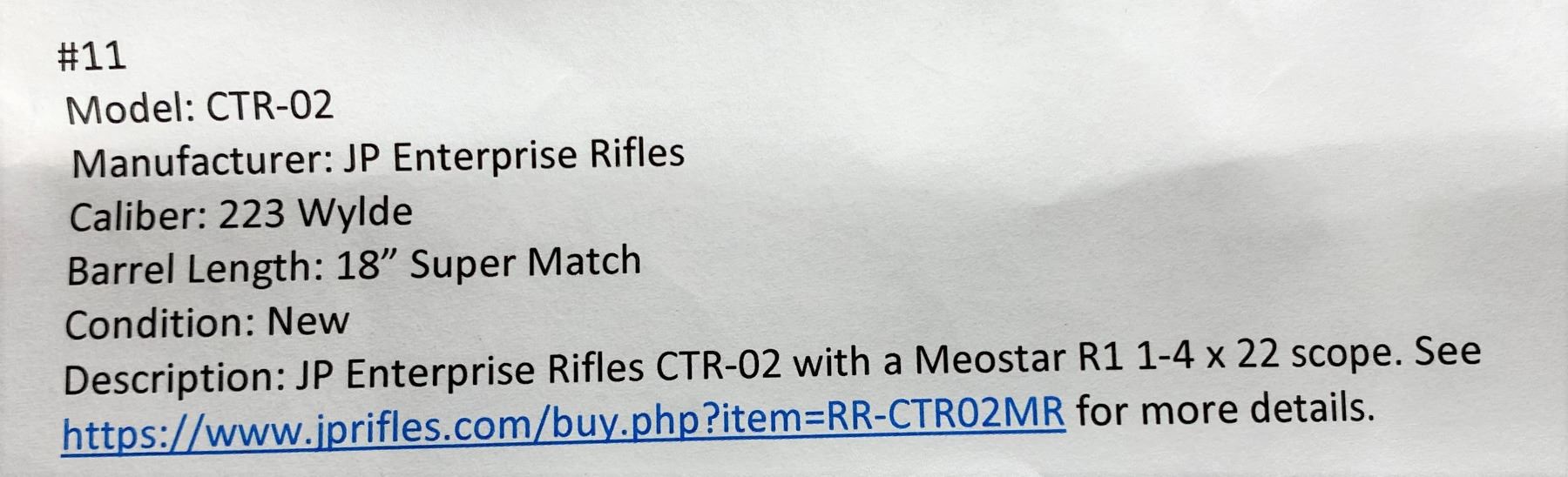All firearms listed in our auction have been donated by a very generous SCI Chapter Member. They are all in excellent working condition and most have not been used other than to zero any optics. Please read the descriptions carefully. Most have several upgrades including Robar NP3 Coating, as well as professional gunsmithing.