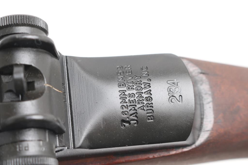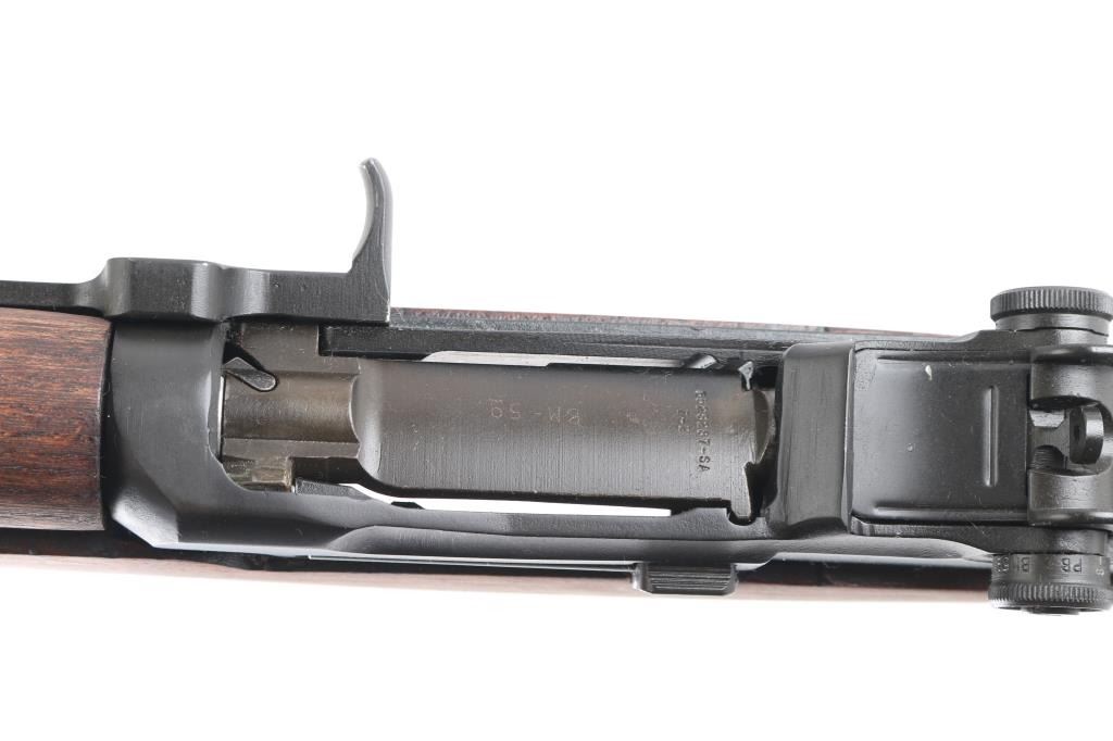 James River Armory BM59 7.62x51 NATO 19in Blued Semi Automatic Rifle - 20+1 Rounds - Used - These BM59 rifles are manufactured on Brand New J.R.A. M1-Garand / BM-59 Receivers, and feature a combination of new condition U.S. Military and Beretta parts. They also feature a new U.S. made barrel and are manufactured to legal Semi Auto BM59 specs. The original Beretta BM59 was an Italian-made rifle based on the M1 Garand rifle. BM59 rifles also include a folding bipod, folding Rifle grenade sight and a unique muzzle device that is a combination muzzle brake/flash hider/rifle grenade launcher. Bore is pristine, Action is crisp, blue finish is about 98% with a few minor scratches, wood is excellent, Beretta BM59 rubber recoil pad. No magazine.
