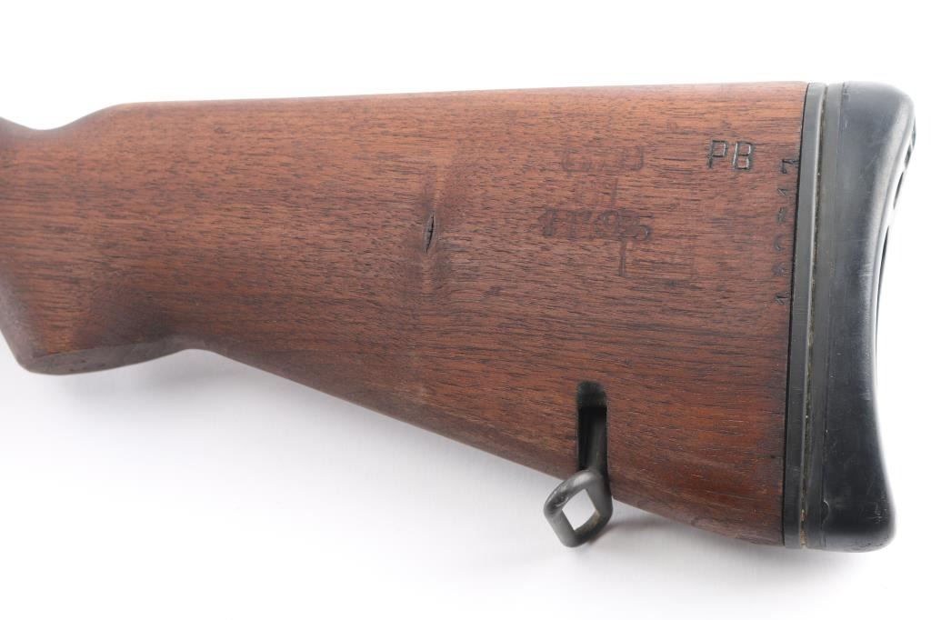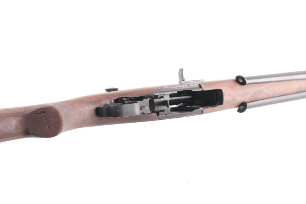 GOOD: Some minor replacement parts; metal smoothly rusted or lightly pitted in places, cleaned or re-blued; principal letters, numerals and design on metal legible; wood refinished, scratched bruised or minor cracks repaired; in good working order.