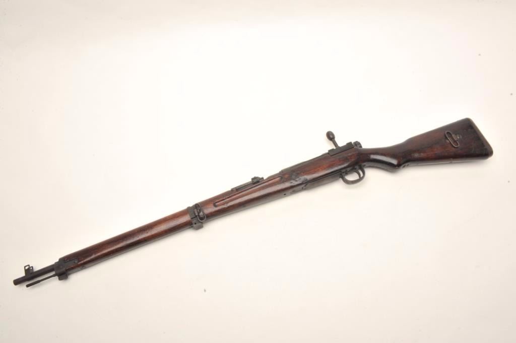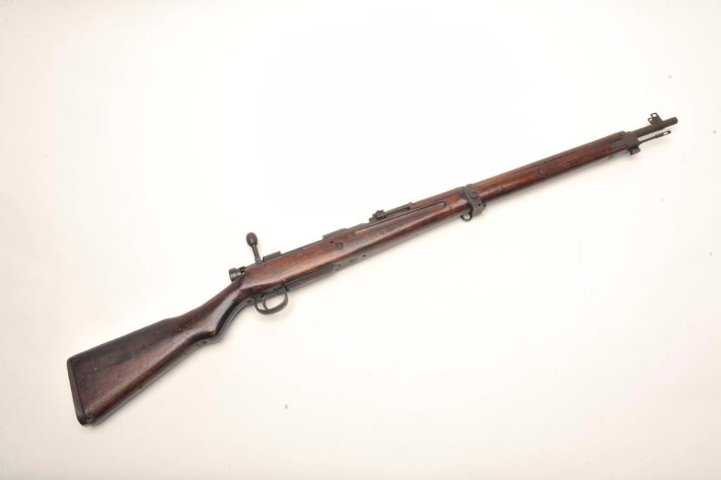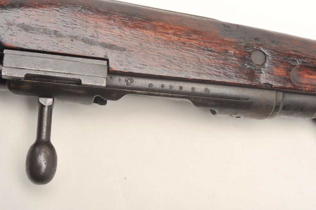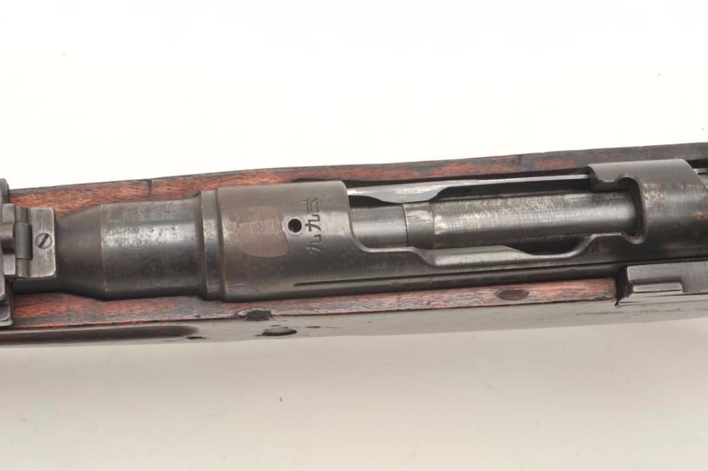 Japanese Arisaka Type 99 bolt action rifle, 7.7mm caliber, 26” barrel, military finish, wood stock, S/N 54640, in overall good to very good condition with a ground mum, aircraft sights remain intact, crisp action,very good bore, overall good wood. (C&R). Est.: $100-$200.