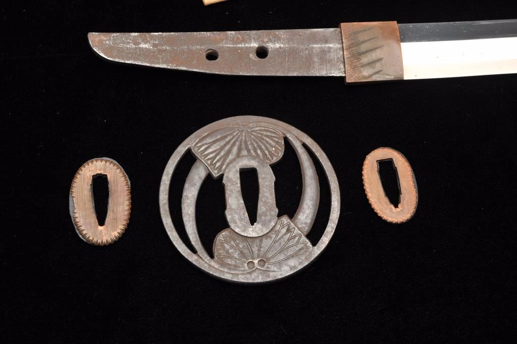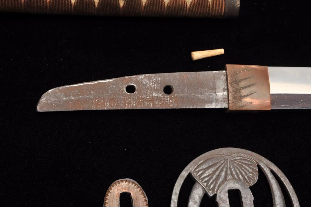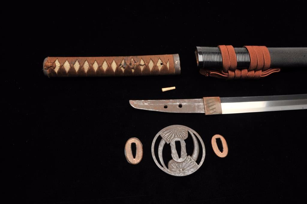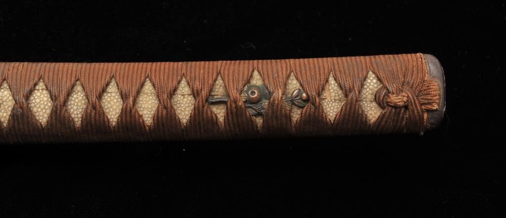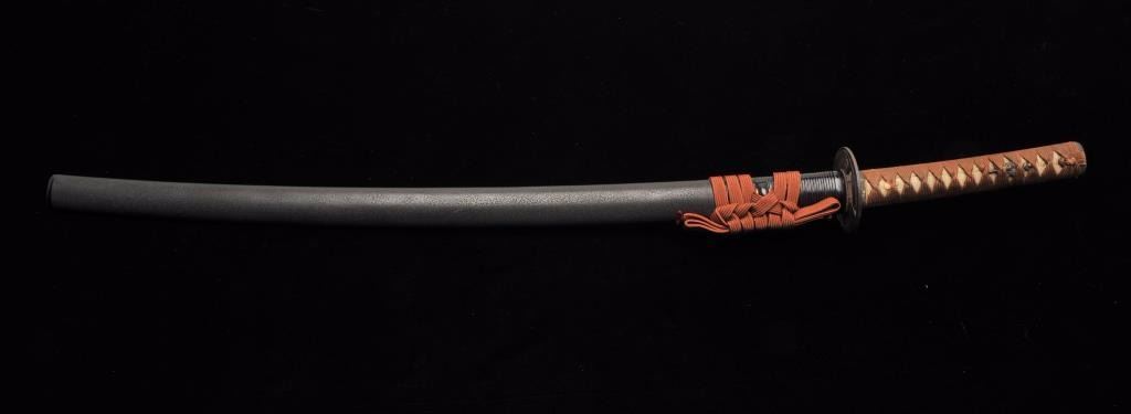 Japanese Koto period katana (Long sword) in samurai mountings. 27 ¼” signed blade in fresh polish. Very nice quality. Traditional old mountings with early and large fighting tsuba. A very early sword of the type used by true samurai. Est.: $2500-$5000
