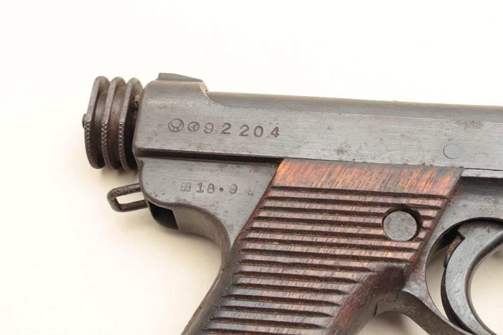 blued finish, wood grips, S/N 92204, in overall very good condition showing majority of military finish, crisp action and markings, very good bore and good grips with an old mar to the top of the left grip. (C&R/PPT). Est.: $300-$600.