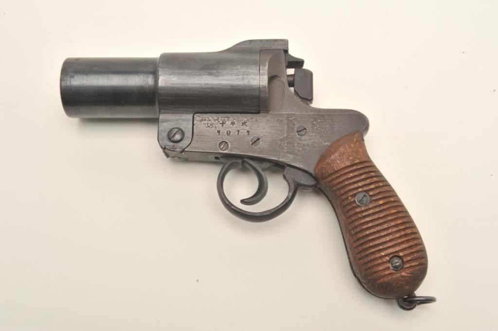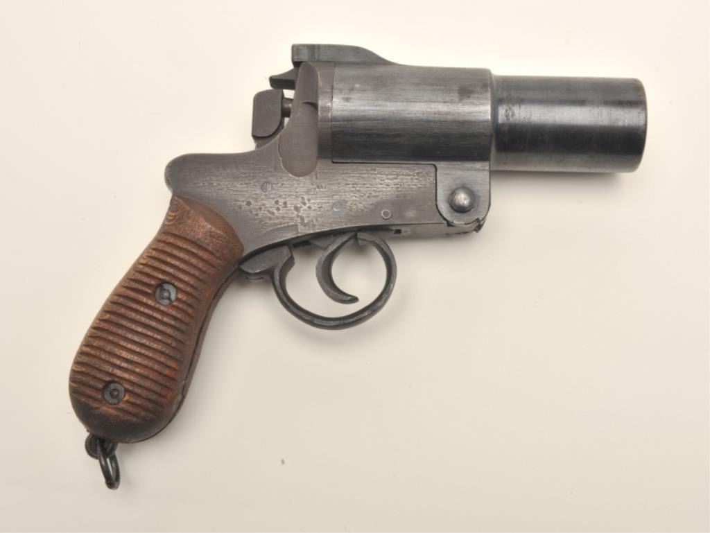 Japanese Type 10 flare pistol, 35mm caliber, approximately 8.5” overall, S/N 7017, in overall good to very good condition; double action working and good bore. Est.: $200-$400.