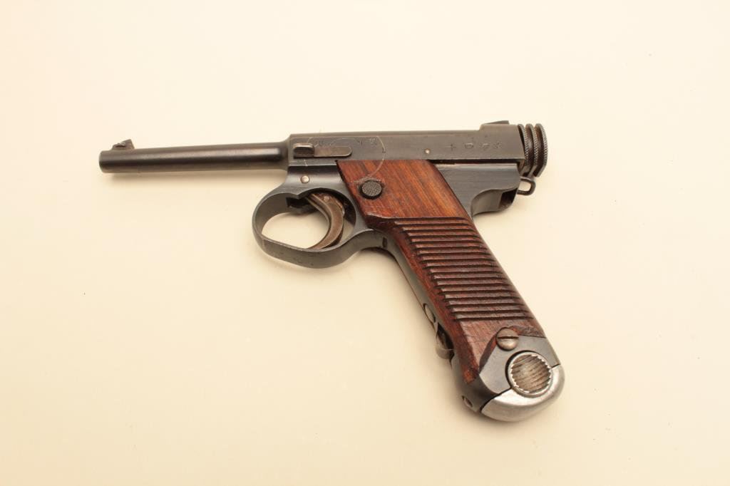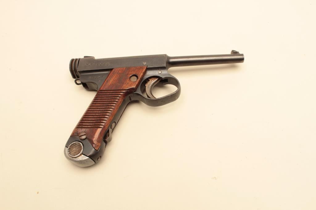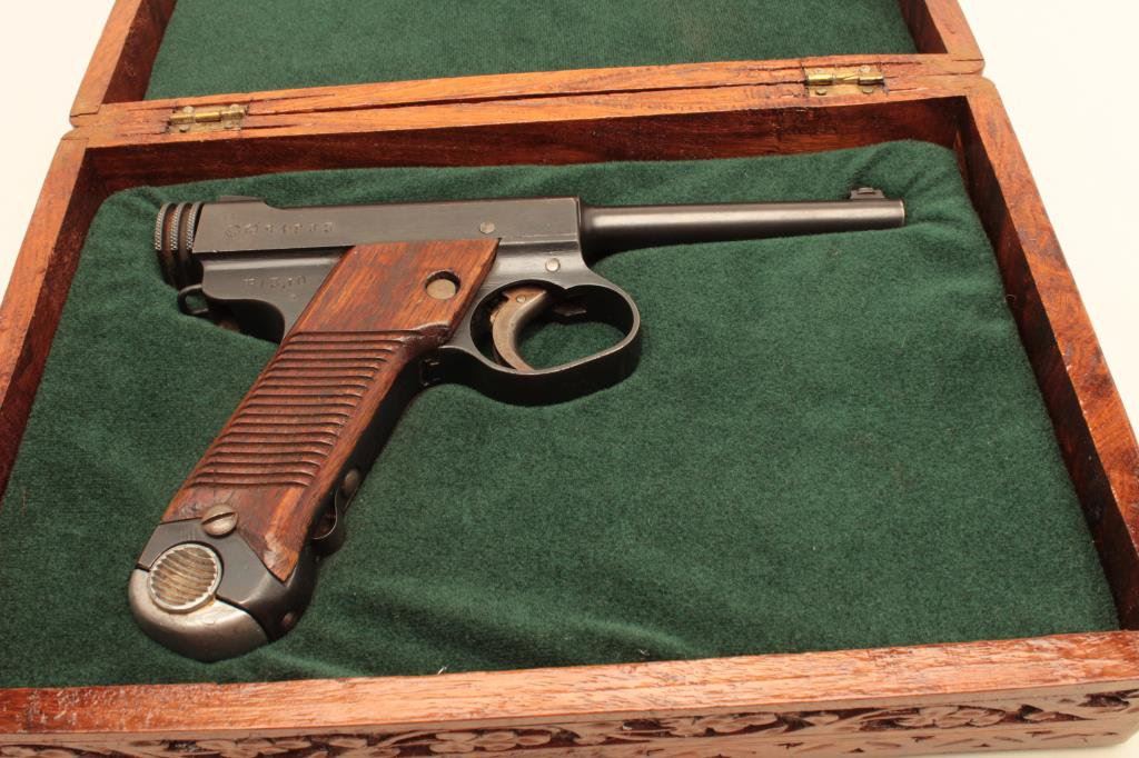 blued finish, wood grips, S/N 84865, in overall very good to near fine condition showing majority of military finish, very good bore, crisp action, sharp markings and very good grips; accompanied by hand carved wood display case. (C&R/PPT). Est.: $350-$700.