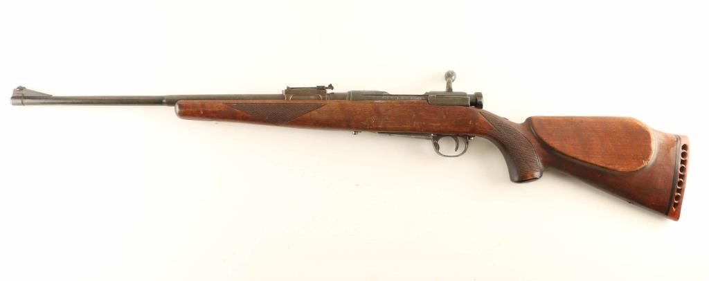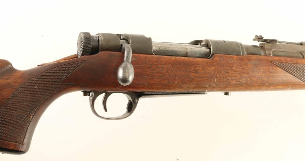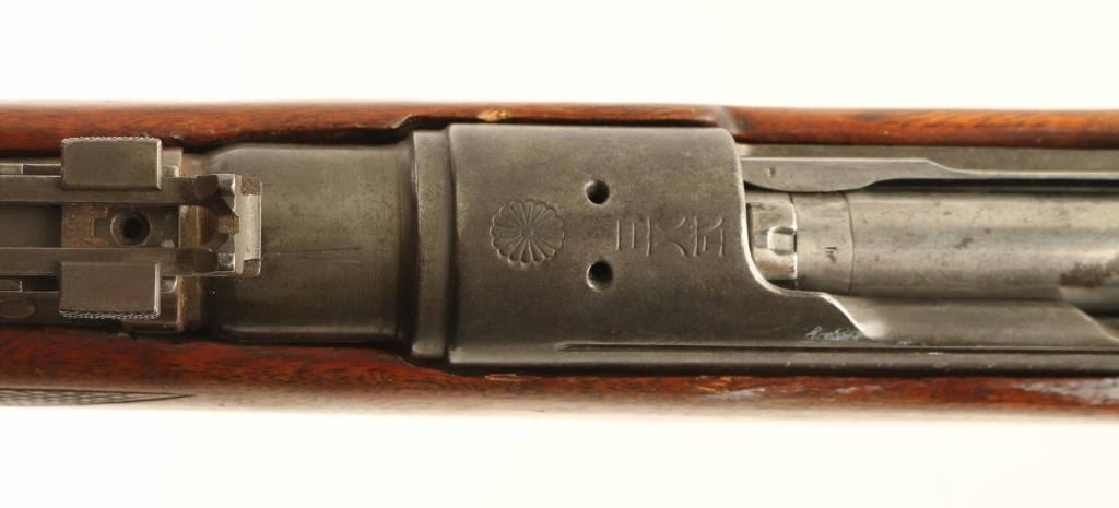 Japanese military rifle converted to sporter profile. Features approx 22" barrel, military type sights, manual safety. Bore is poor condition, dark with visible rifling. Metal is finished in a grayish color that appears similar to cold blue. Stock is a poor condition Monte Carlo sporter profile with a split forend, visible glue from a previous attempted repair. Action screws are incorrect replacements with fillister heads and washers. Caliber is uncertain and needs to be checked. Barrel appears to have a plug repair, visible on left below rear sight. Rifle should be considered unsafe to fire until inspected by a competent gunsmith. Condition is NRA Poor - Unsafe to Fire *** C&R Firearm ***