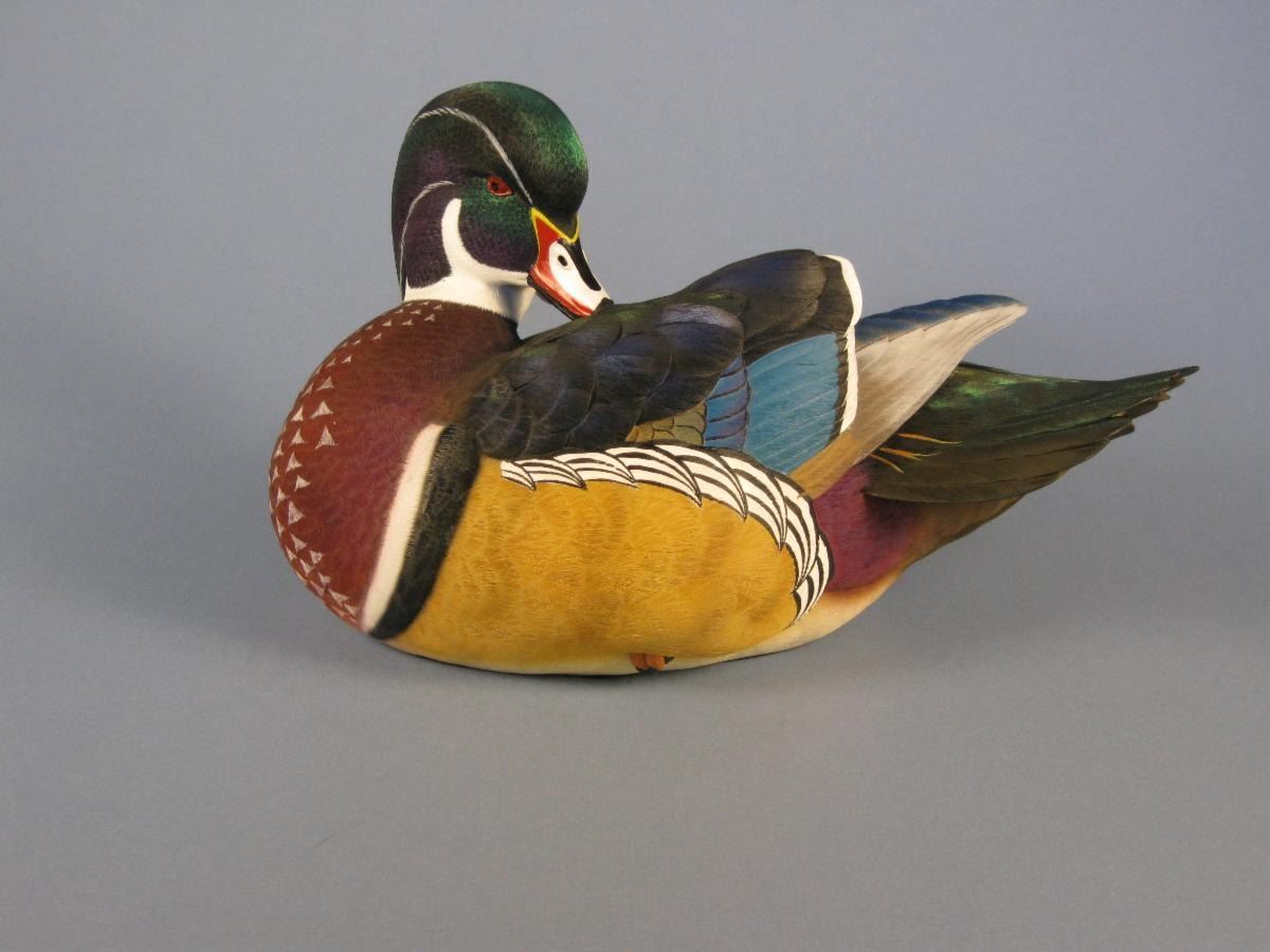 Cast resin decoy from the original wood carving by World Champion waterfowl carver Jett Brunet of Louisiana. Brunet decoys have appeared in the DU event merchandise package for over 20 years. Painted in exacting detail.