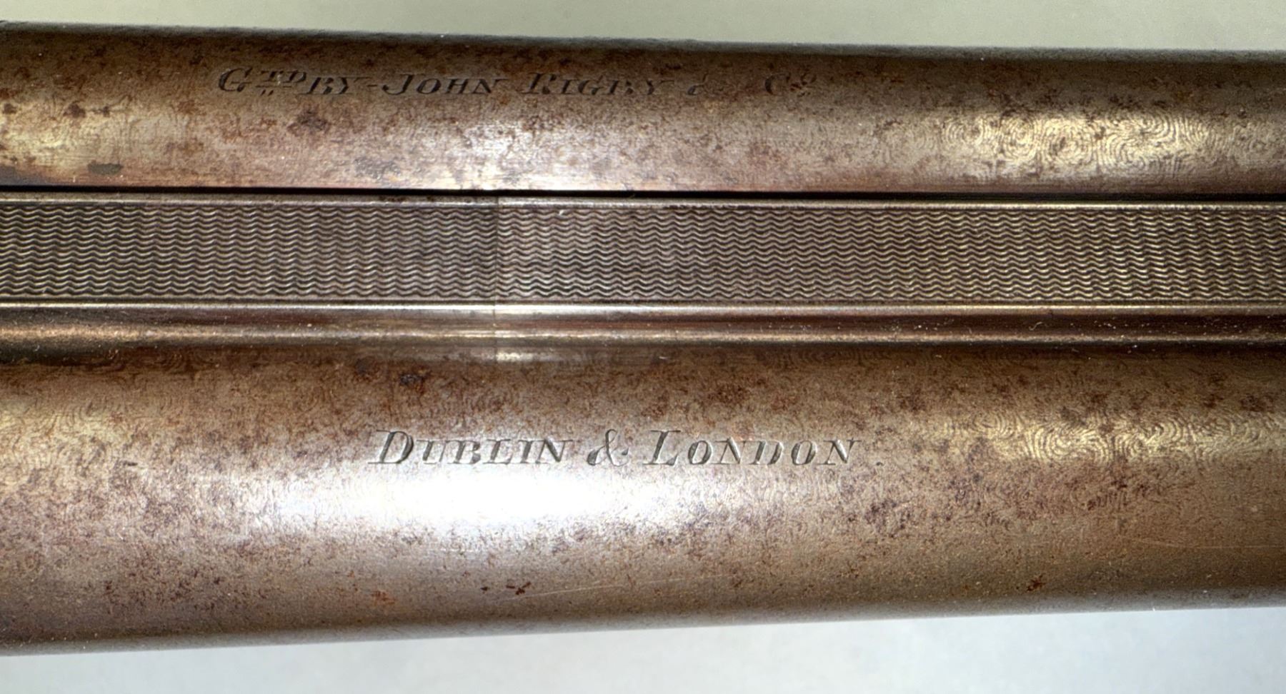 GTD by JOHN RIGBY & CO with 2 1/2-inch chambers, about full choke bore in