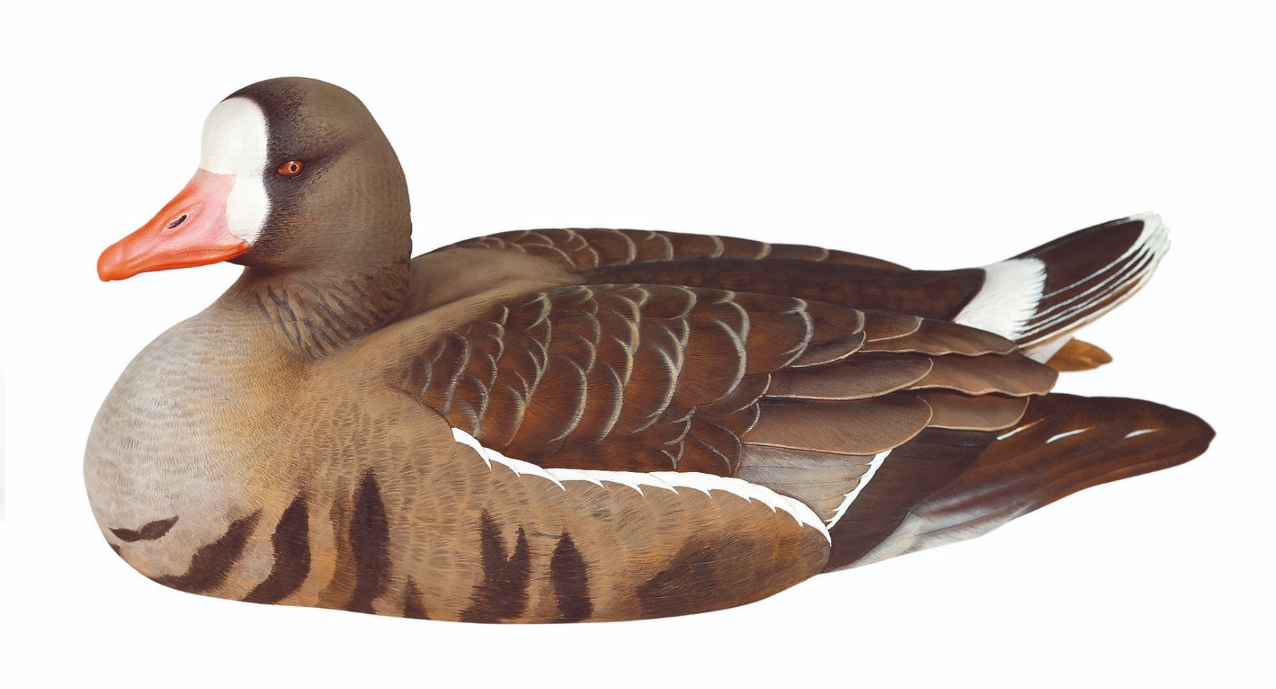 Cast resin decoy from the original wood carving by World Champion waterfowl carver Jude Brunet of Louisiana. Brunet decoys have appeared in the DU event merchandise package for over 20 years. Painted in exacting detail. Approximate dimensions are 9” x 5” x 6”