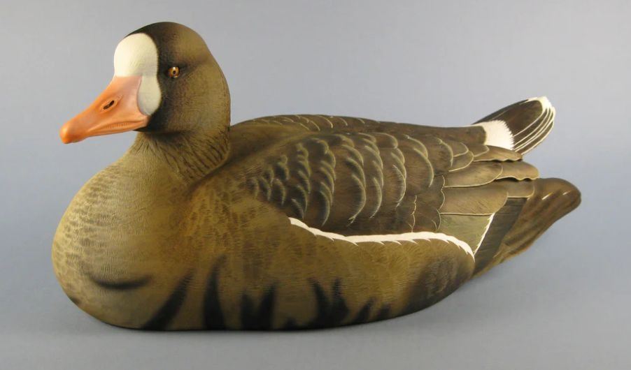 Cast resin decoy from the original wood carving by World Champion waterfowl carver Jude Brunet of Louisiana. Brunet decoys have appeared in the DU event merchandise package for over 20 years. Painted in exacting detail. Approximate dimensions are 9” x 5” x 6”