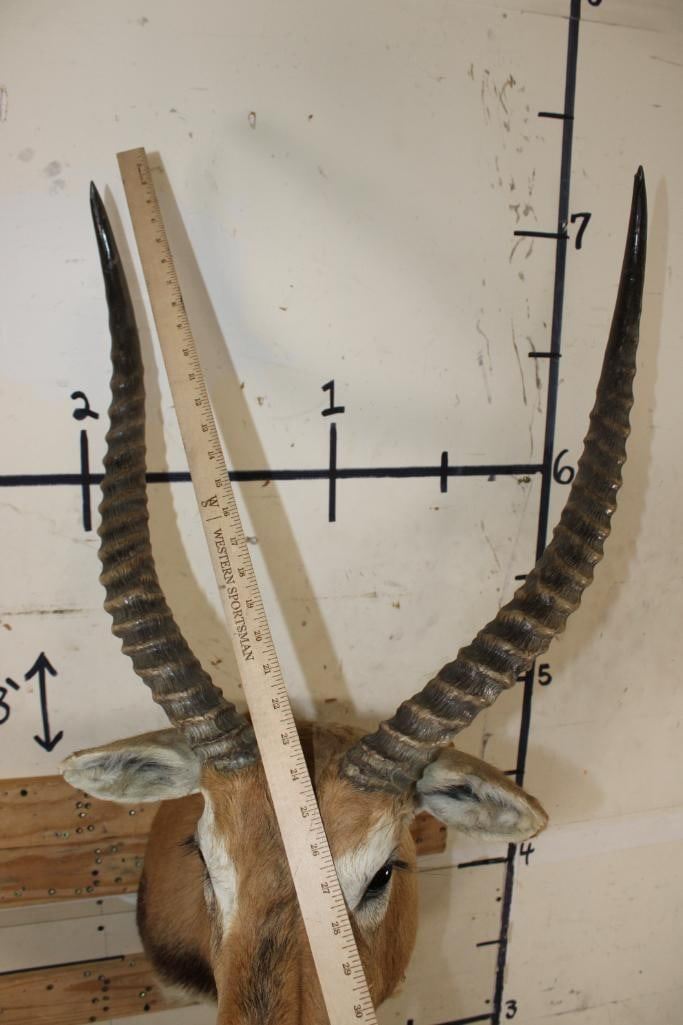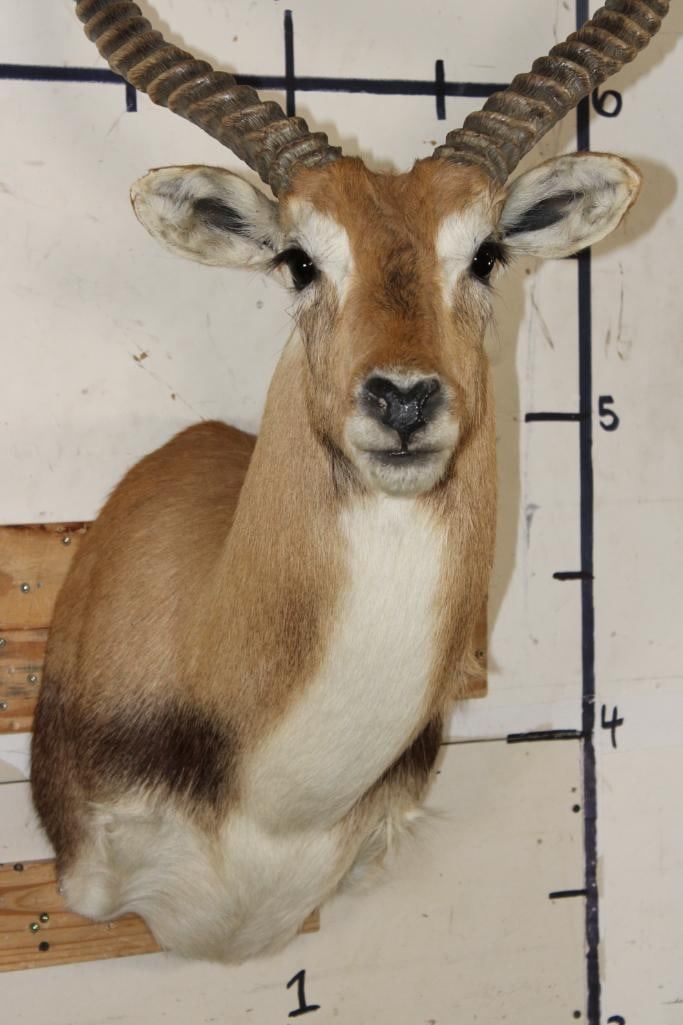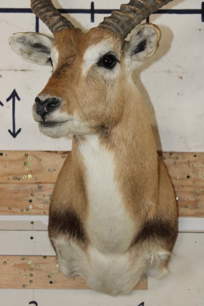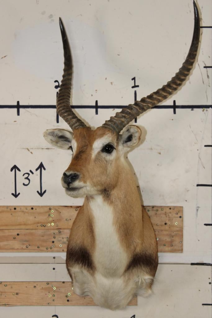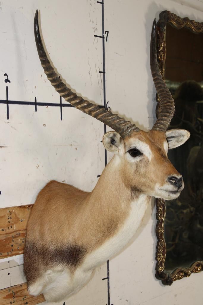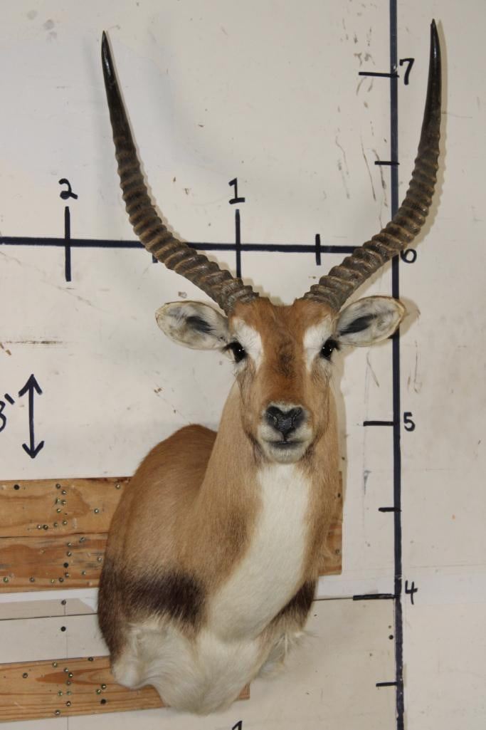 Very Nice, Clean, and Newer KAFUE LECHWE Shoulder Mount. The Left Horn measures 26.25" Long and the Right Horn measures 25.75" Long. It is in Very Good Condition. TAXIDERMY