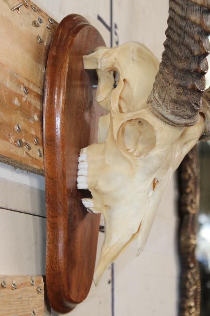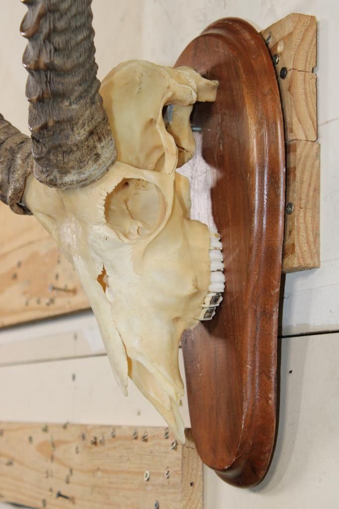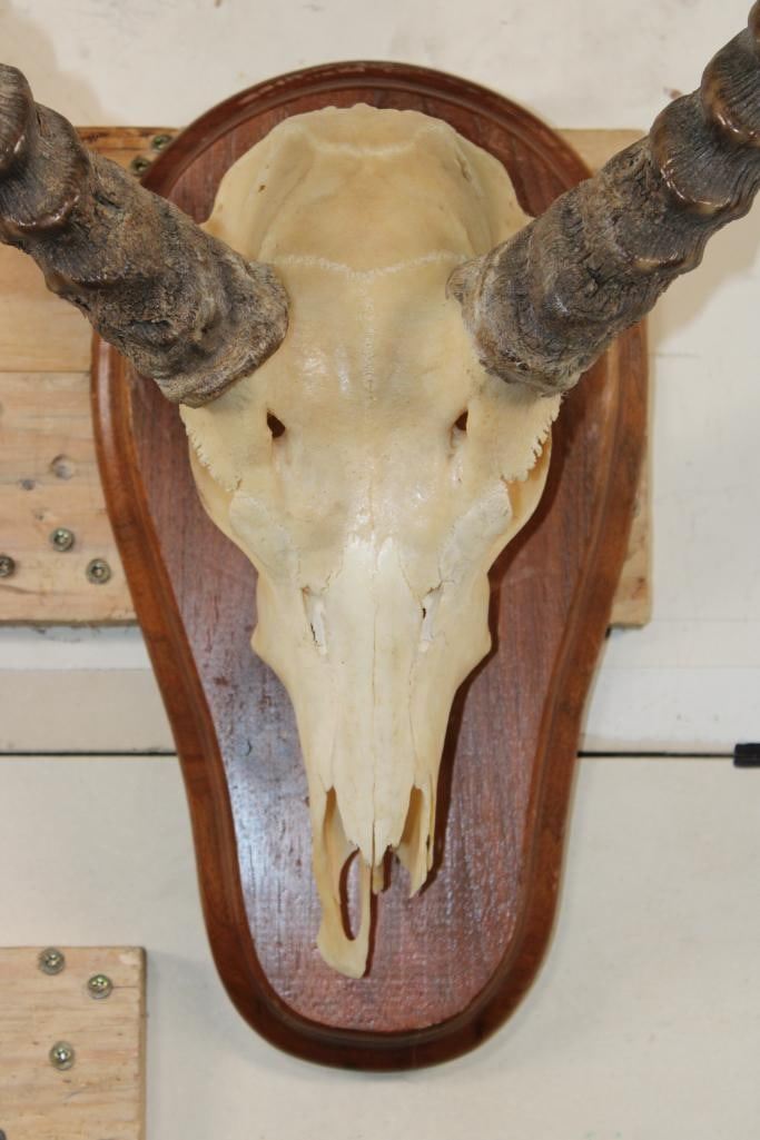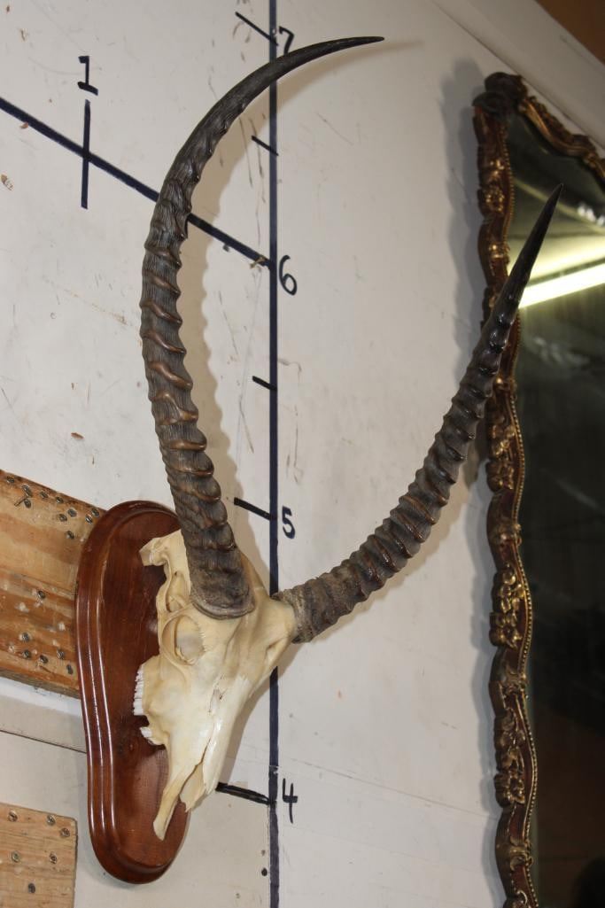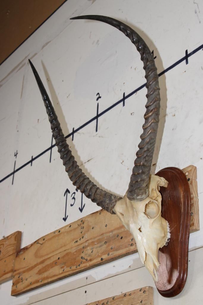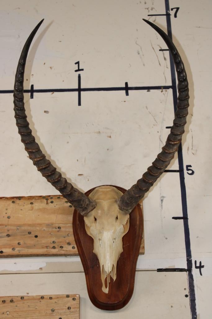 KAFUE LECHWE Skull on a Wooden Plaque. The Left Horn measures 23.75" Long and the Right Horn measures 23.75" Long. TAXIDERMY