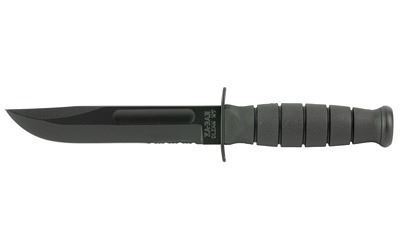 KA-BAR Knives, KA-BAR Short, Fixed Blade Knife, 5.25" Blade Length, 9.375" Overall Length, Clip Point, Combo Edge, 1095 Cro-Van/Black Steel, Matte Finish, Black, Kraton G Handle, Includes Glass Filled Leather Sheath
