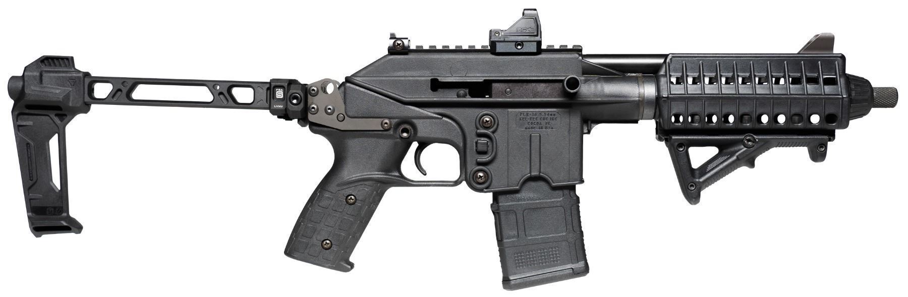 The Keltec PLR-16 is a semi-auto tactical pistol chambered in .223 Remington / 5.56 NATO with a 9.2" barrel and a 10 + 1 capacity. Designed around a lightweight polymer frame and outfitted with a threaded barrel and tactical upgrades, the PLR-16 bridges the gap between compact firepower and modular versatility. It includes a Viridian RFX11, Strike Industries pistol brace, and Magpul angled grip, making it a formidable option for modern defensive and range applications.