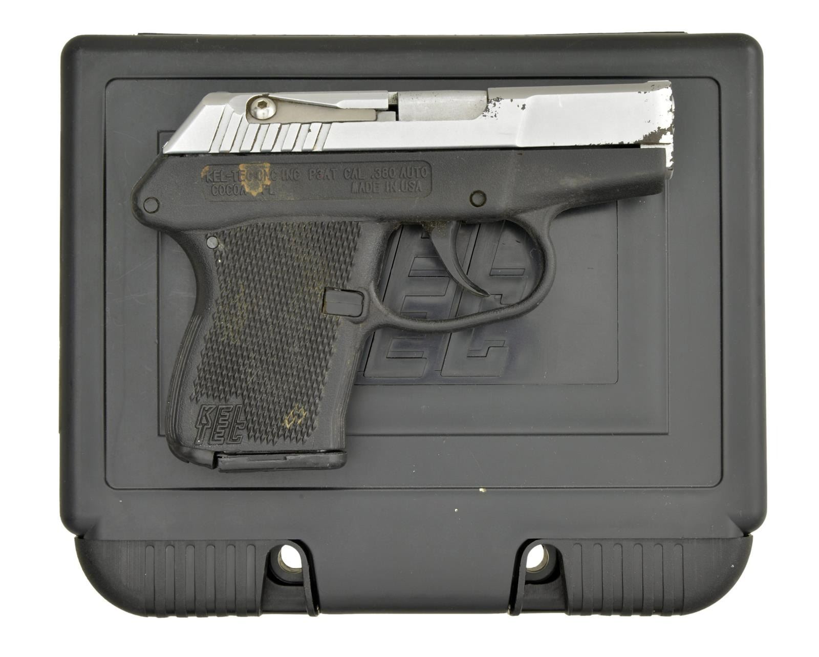 Cal. 380 ACP. S# J9484. Bbl. 2.76". Black polymer frame. MAGS: 1 - 6 rd. UNATTACHED ACCESSORIES: Kel-tec box w/ non matching label. CONDITION: slide & bbl. have good bright finish w/ areas of cleaned oxidation & light pitting. Very good intact frame w/ stain spots. Very good bore w/ light pitting near muzzle. (23-1007/MD). $100-150.