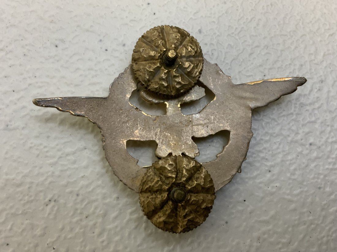 KINGDOM OF YUGOSLAVIA ROYAL NAVAL FLIGHT ENGINEER WINGS BADGE. GREAT DETAILS. 2 SCREW BACK POSTS WITH SCREW NUTS. MOST GILT IS REMAIN .RARE BADGE