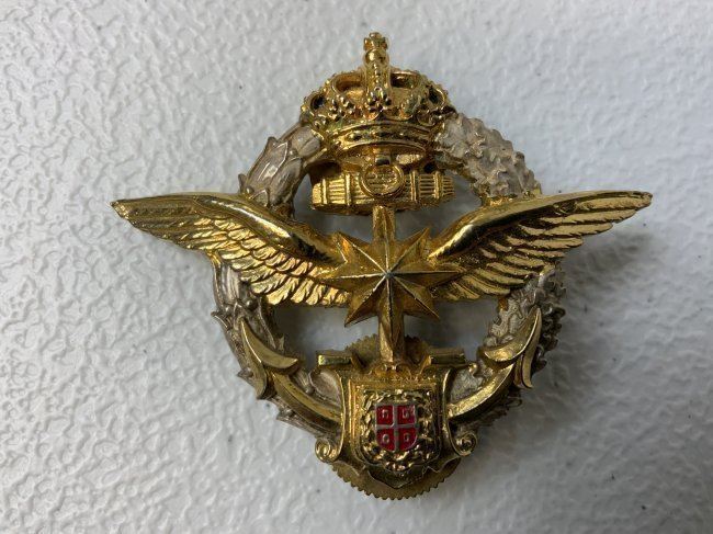 KINGDOM OF YUGOSLAVIA ROYAL NAVAL NAVIGATORS WINGS BADGE. GREAT DETAILS. 2 SCREW BACK POSTS WITH SCREW NUTS. MOST GILT IS REMAIN .RARE BADGE