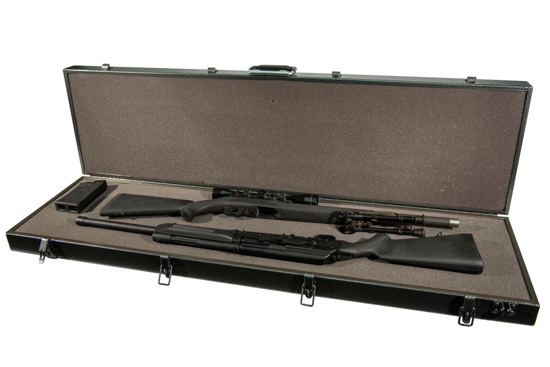 Protect your valuable firearms with one of the very best gun cases on the market, made right here in the state of Washington! KMP Double Rifle Case, Size - 52x14x4.5, Constructed from .080 thick aircraft grade aluminum · Premium Powder Coat, Closed rivets, Military spec hardware · Stainless steel locking assembly · Heli-Arc corner welds.