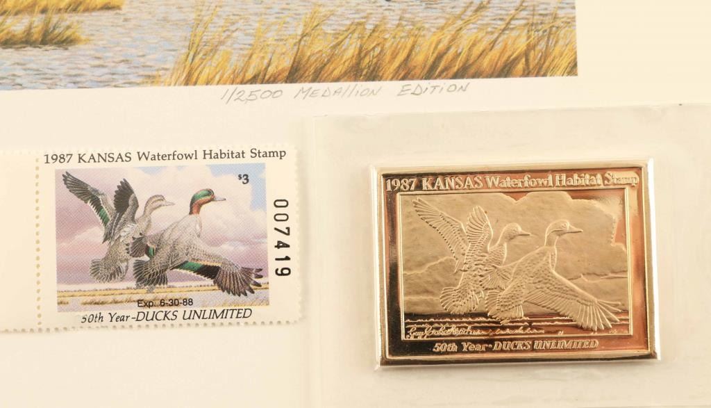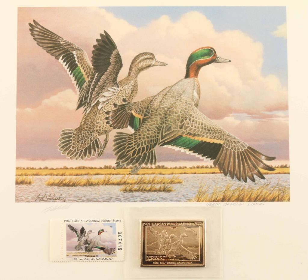 by Guy Coheleach, Gold Medallion Edition. From the Robert Peterson collection of Peterson Publishing. Number 1/2500, hand signed in pencil by artist. In original sleeve, includes print, medallion, and stamp,