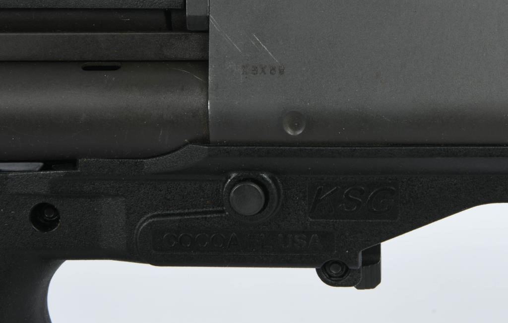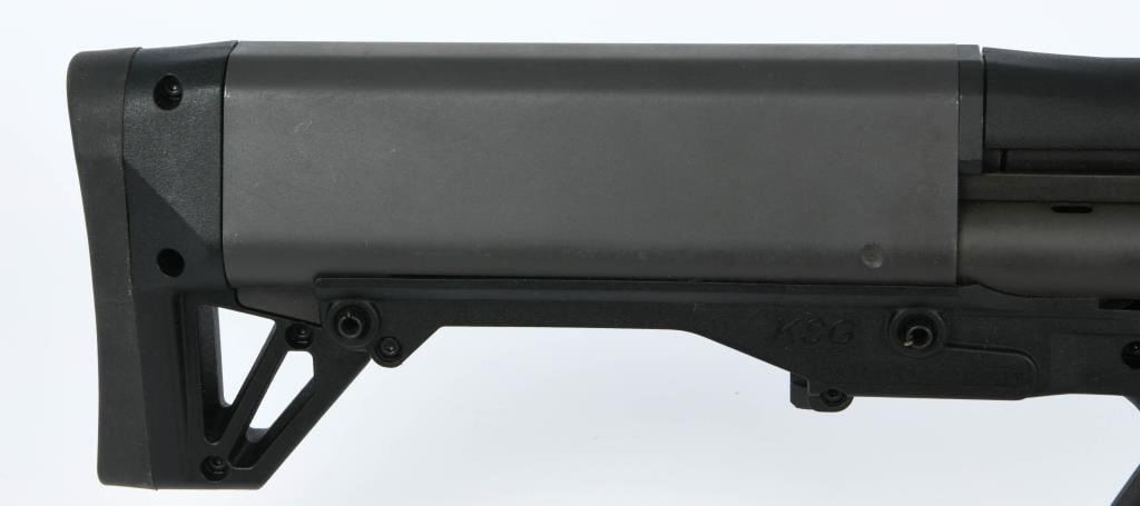 Introducing the Kel-Tec KSG Pump Shotgun, a formidable 12-gauge powerhouse designed with innovation at its core. Crafted primarily for defensive purposes, this shotgun boasts a single 18.5" barrel fed by two separate magazine tubes, setting it apart in terms of versatility and firepower. Equipped with a manual selector lever positioned conveniently behind the trigger guard, the KSG allows you to choose which tube feeds the hardened steel receiver. This strategic design feature provides flexibility in selecting your ammunition source. The downward ejection of shells enhances reliability, a crucial factor in high-pressure situations. Impressively, the dual tube magazines can hold a staggering 12 rounds of 3" shells, six rounds in each tube, delivering serious firepower when needed most. For those opting for 2-3/4" shells, the KSG can accommodate up to 14 rounds, and it can even cycle smaller 1-3/4" shells for those wanting maximum shot capacity. Safety is paramount, and the KSG includes features such as a familiar cross-bolt style safety, a pump release lever conveniently located in front of the trigger guard, and the ability to clear the chamber without feeding a round. These attributes make it an excellent choice for home defense. The Zytel synthetic forend and pump feature top and bottom picatinny rails, allowing for the attachment of lights, optics, and other accessories. The synthetic stock incorporates a thick, soft rubber recoil pad to mitigate the substantial recoil of this powerful shotgun. Whether you're hitting the range for shooting fun or prioritizing home defense, the Kel-Tec KSG Pump Shotgun offers a perfect balance of innovation, reliability, and firepower. Secure this exceptional firearm now and experience the confidence of having a KSG by your side. Bid with assurance!