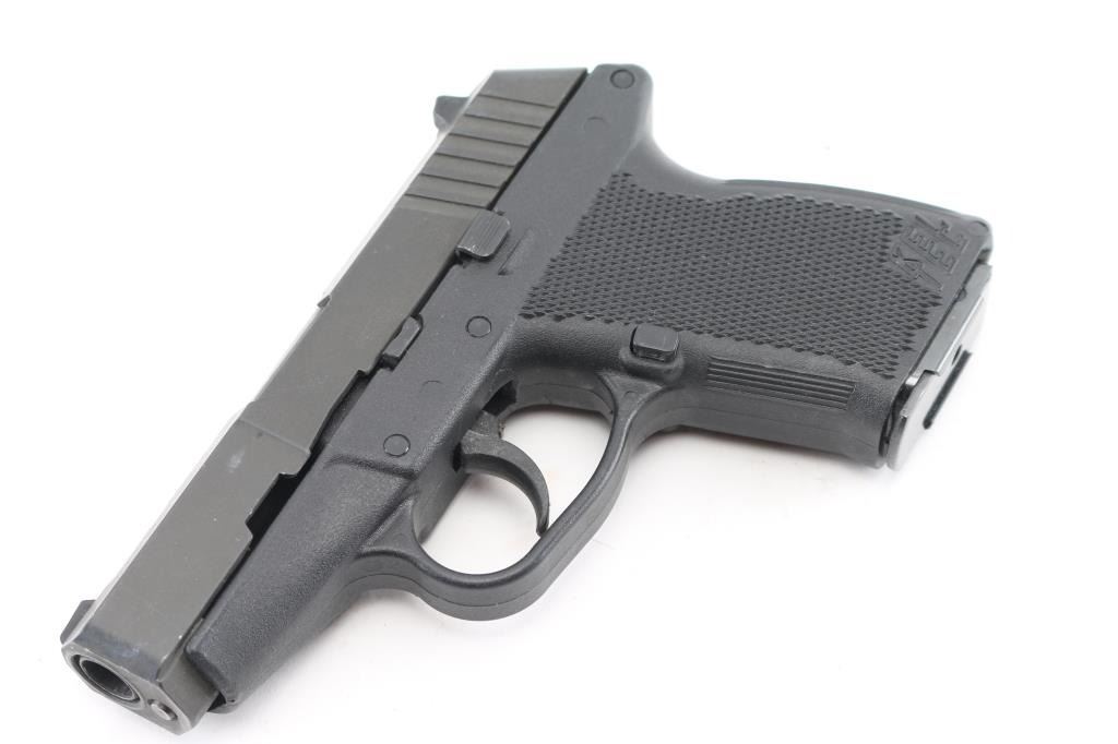 Semiautomatic pistol made in USA. Features 3" barrel, 3 dot sights (rear in dovetail), double action only type trigger, blued slide, textured black polymer frame. Bore is excellent. Metal finish is 90% with handling marks, some fading of bluing on slide. Frame is excellent. Includes manual, two flush fit magazines. Condition is NRA Very Good+ *** Modern Firearm ***