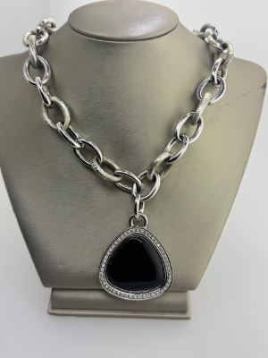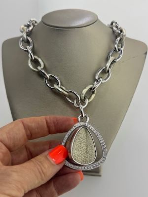 Kelly Mitchell Fine Jewelry has generously donated an Italian link chain in silver & enamel with a pendant of an elephant skin motif surrounded by diamonds.