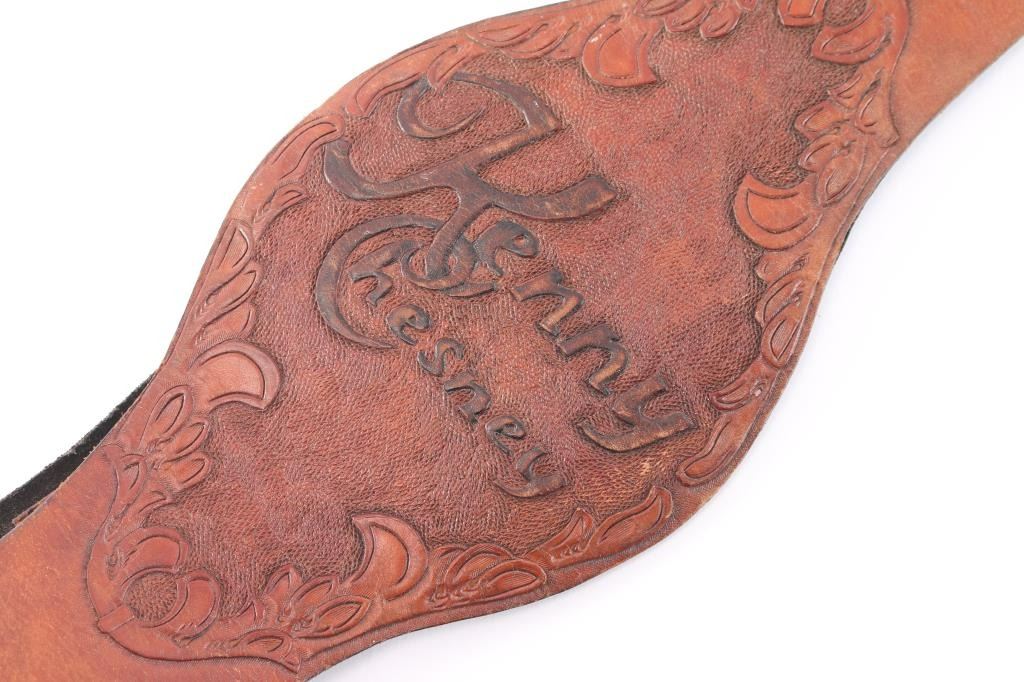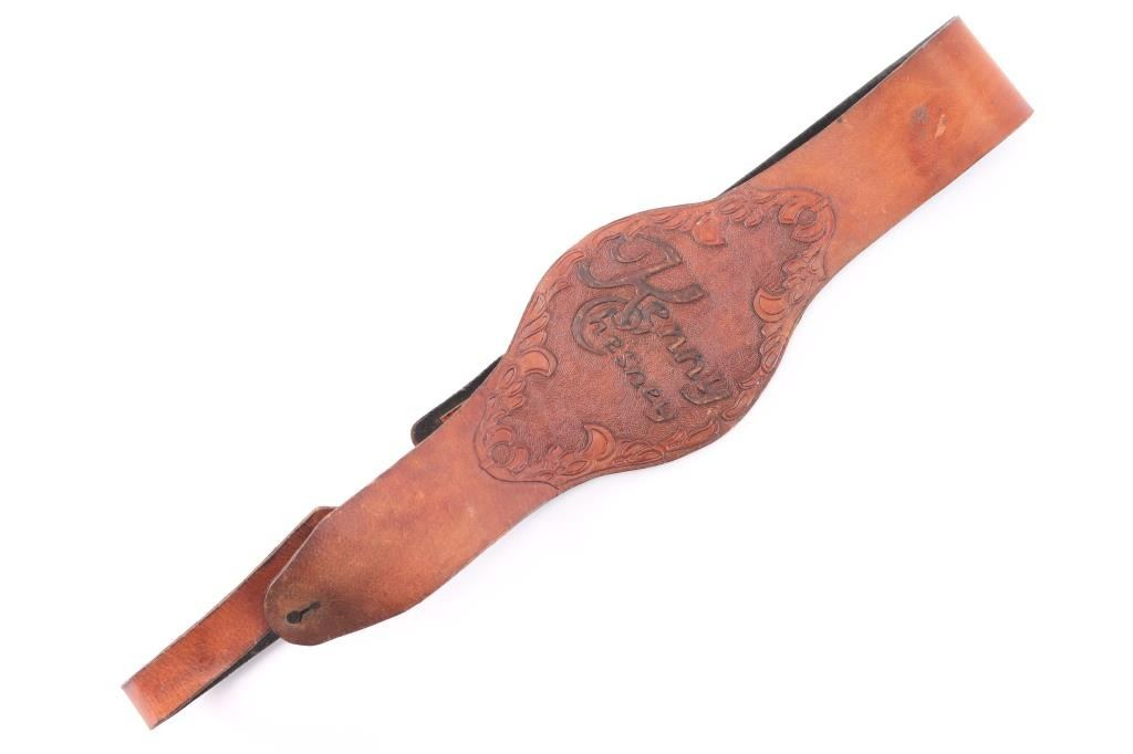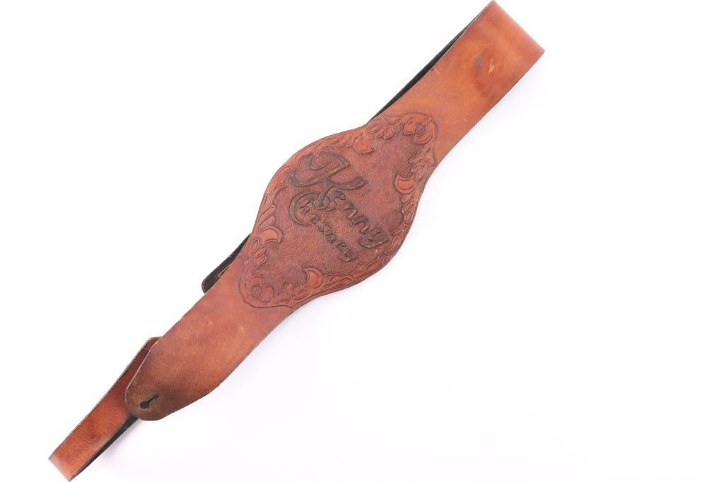 Country music super star strap with Tooled brown leather with his name. 49"end to end