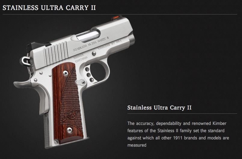 The Kimber Stainless Ultra Carry II. The accuracy, dependability and renowned Kimber features of the Stainless II family set the standard against wich all other 1911 brnads and models are measured. Chambered in 9mm. The image is representative, the actual firearm may vary slightly.