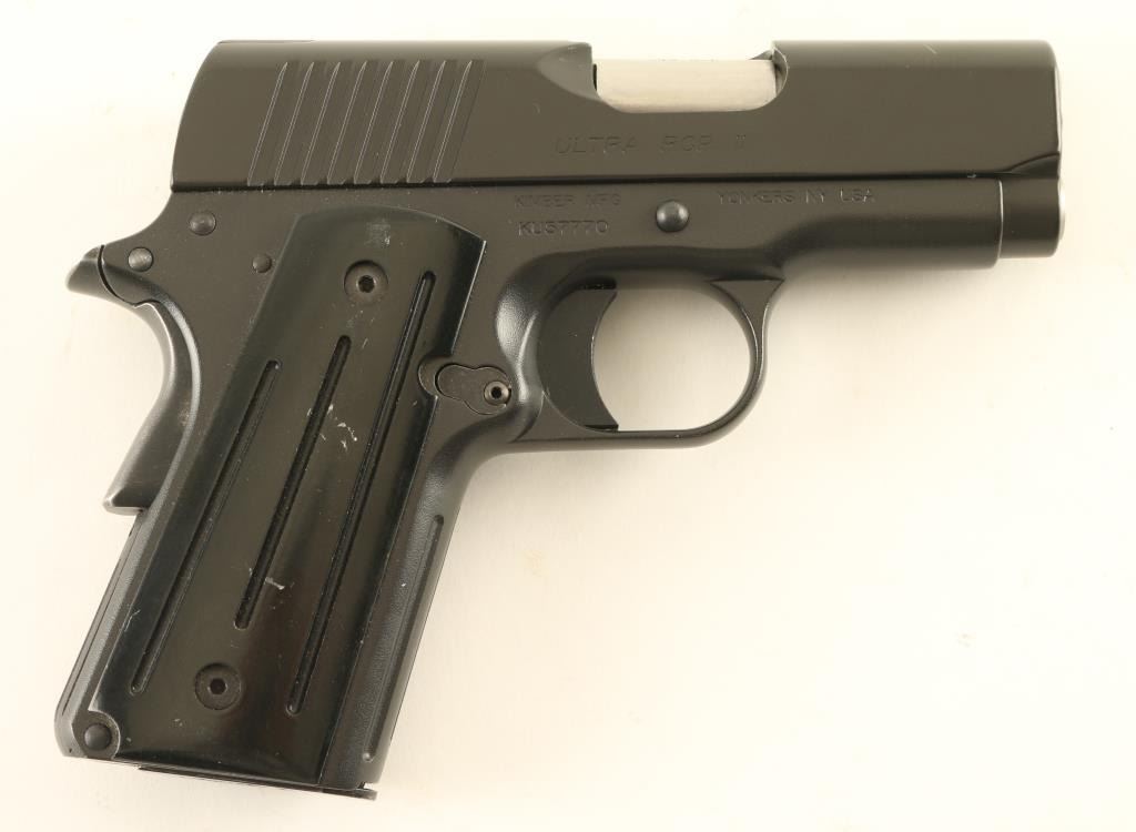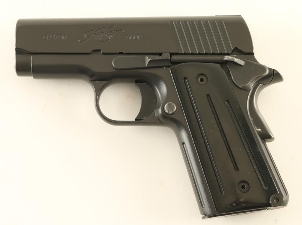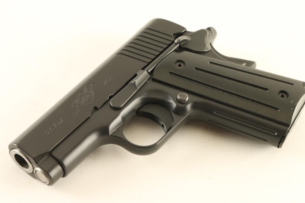 Semiautomatic pistol features matte blued finish, grooved black plastic grips, 3" barrel, "U" channel "sight trough", compact frame, manual safety, grip safety, single action trigger, bobbed hammer. Bore is excellent. Retains 95% finish with thinning or bare metal at grip safety & thumb safety. Grips are very good condition with some scuffs. Includes one magazine. Condition is NRA Very Good++ *** Modern Firearm ***