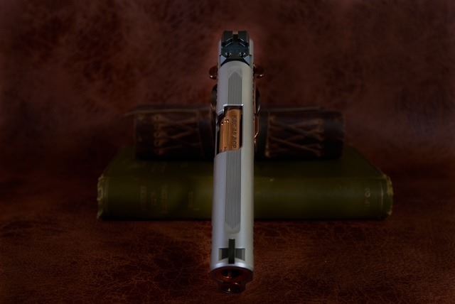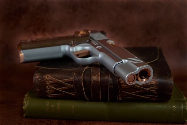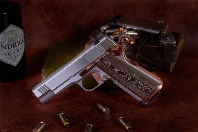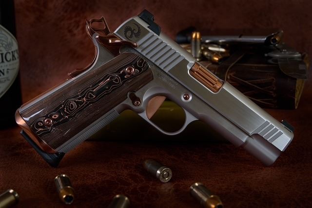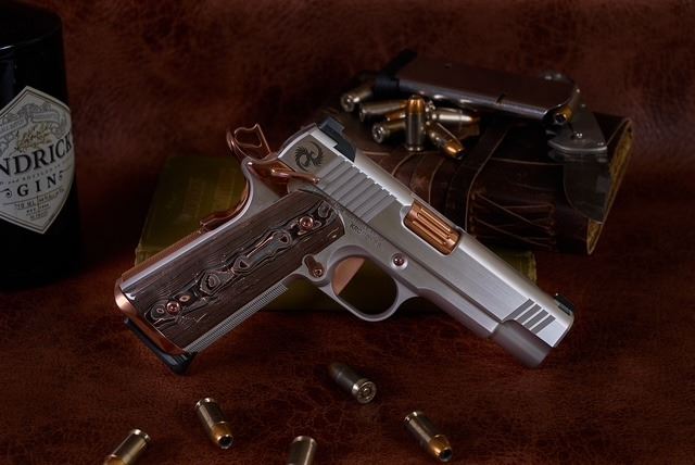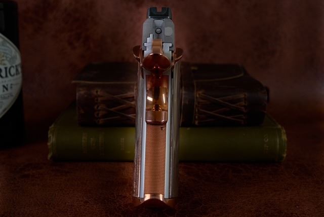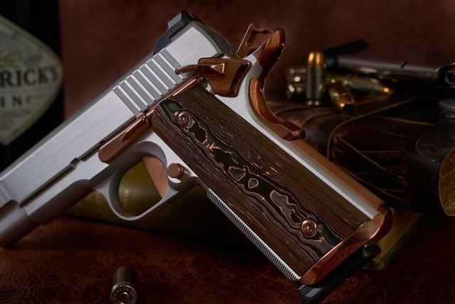 Kings River Custom (KRC) has generously donated a Level One 1911 Commander chambered in .45 ACP, handcrafted with a stainless-steel frame, slide, solid silver bead front sight with black Fixed Rear sight, fluted bull barrel, flat trigger, striking copper PVD small parts, and Coppermascus Carbon Fiber Grips that match the copper small parts.