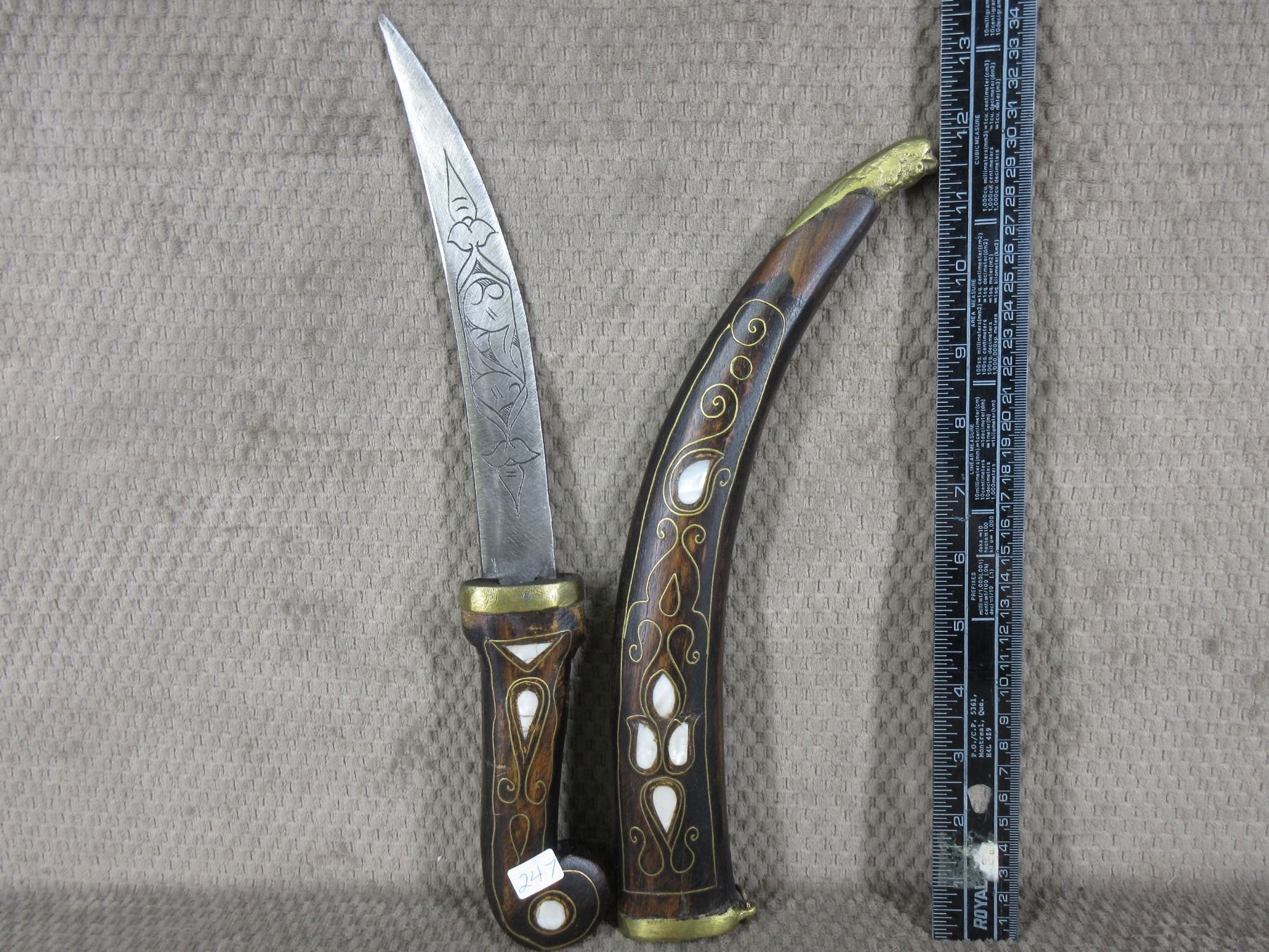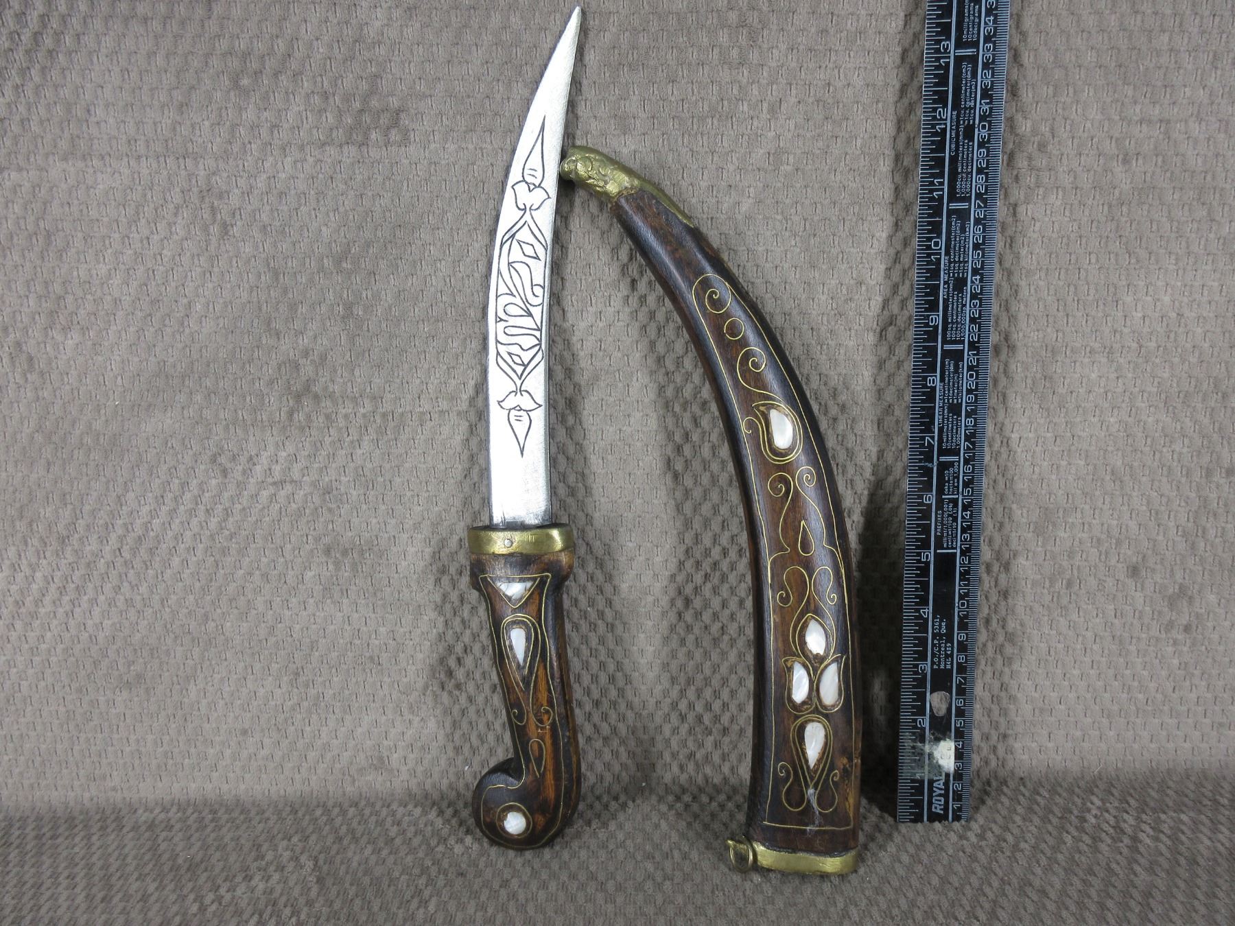 Kirpan Type Knife - Wood Sheath with Mother of Pearl