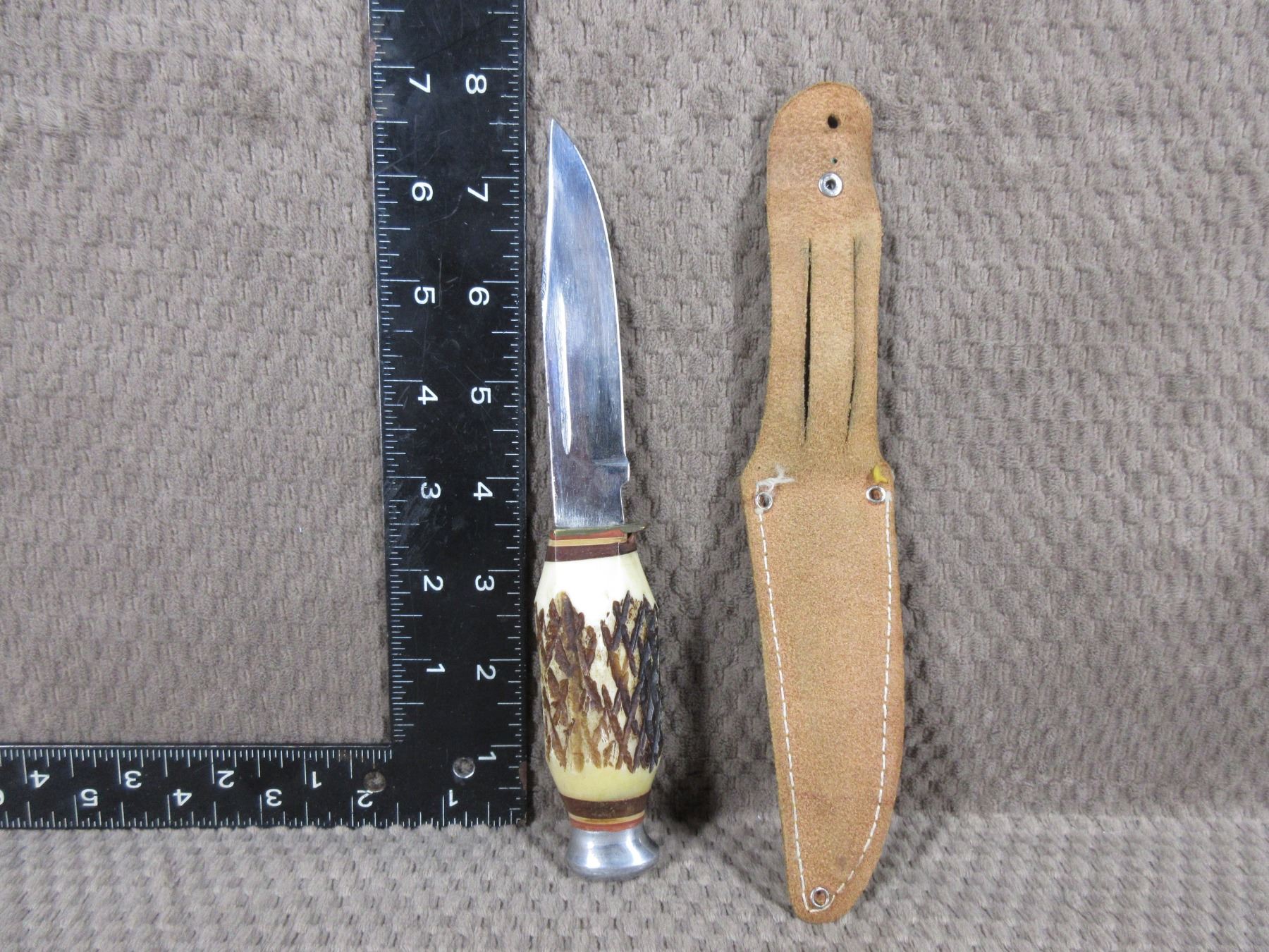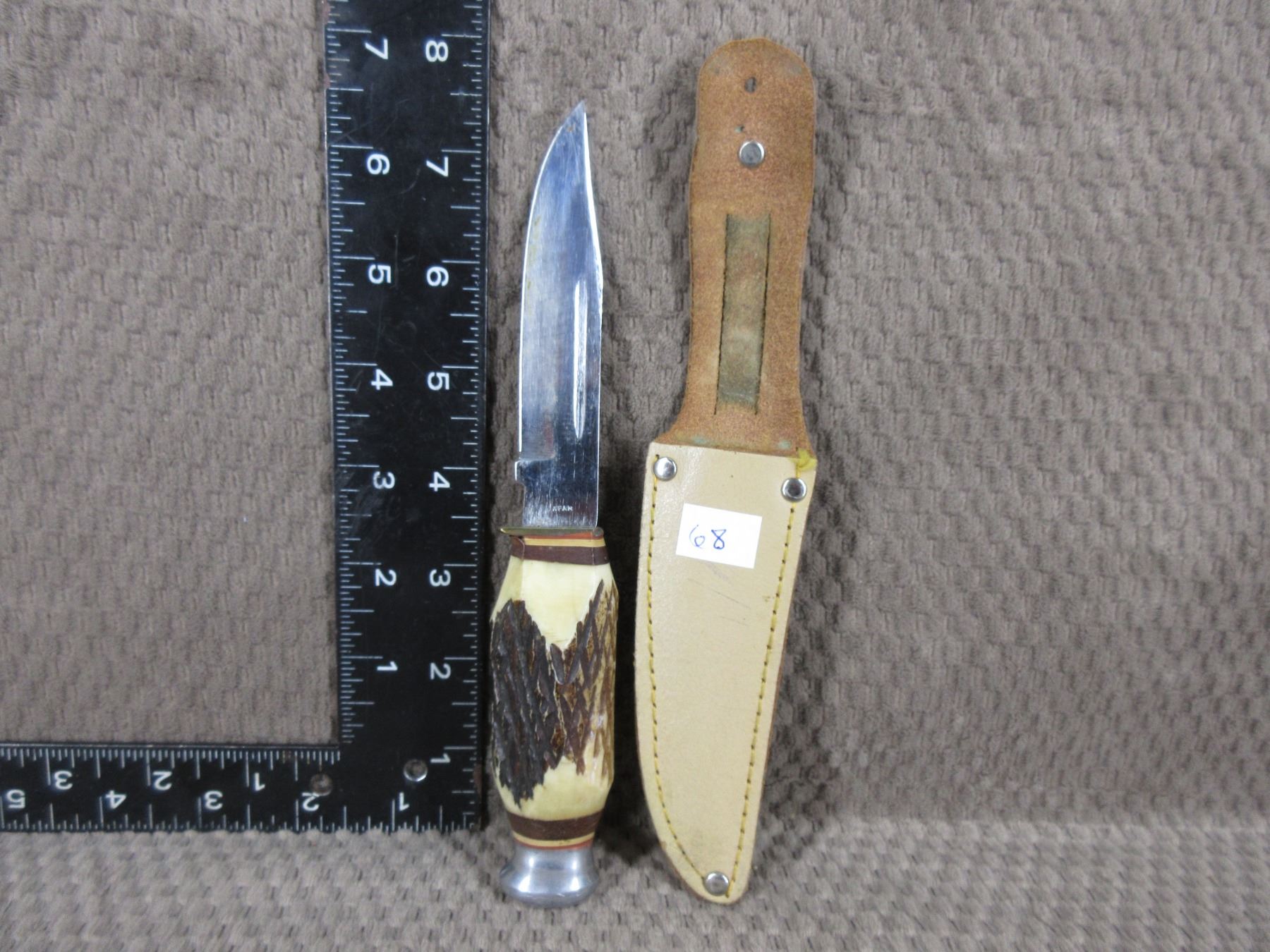 Knife with Bone Handle and Sheath - Blade Stamped Japan