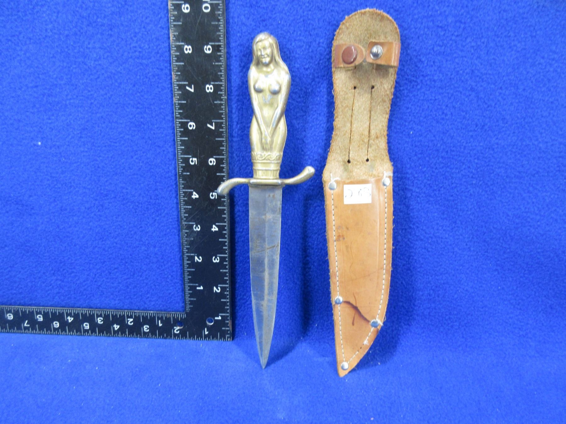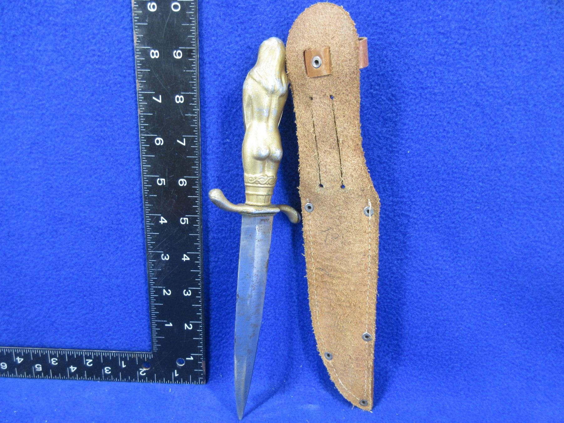 Korium Knife "The Maiden" Bronze Plated Nude Lady Handle - Made in Japan - with sheath