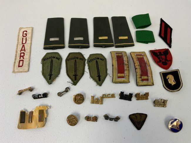 LARGE LOT OF VINTAGE US MILITARY BRASS AND INSIGNIAS