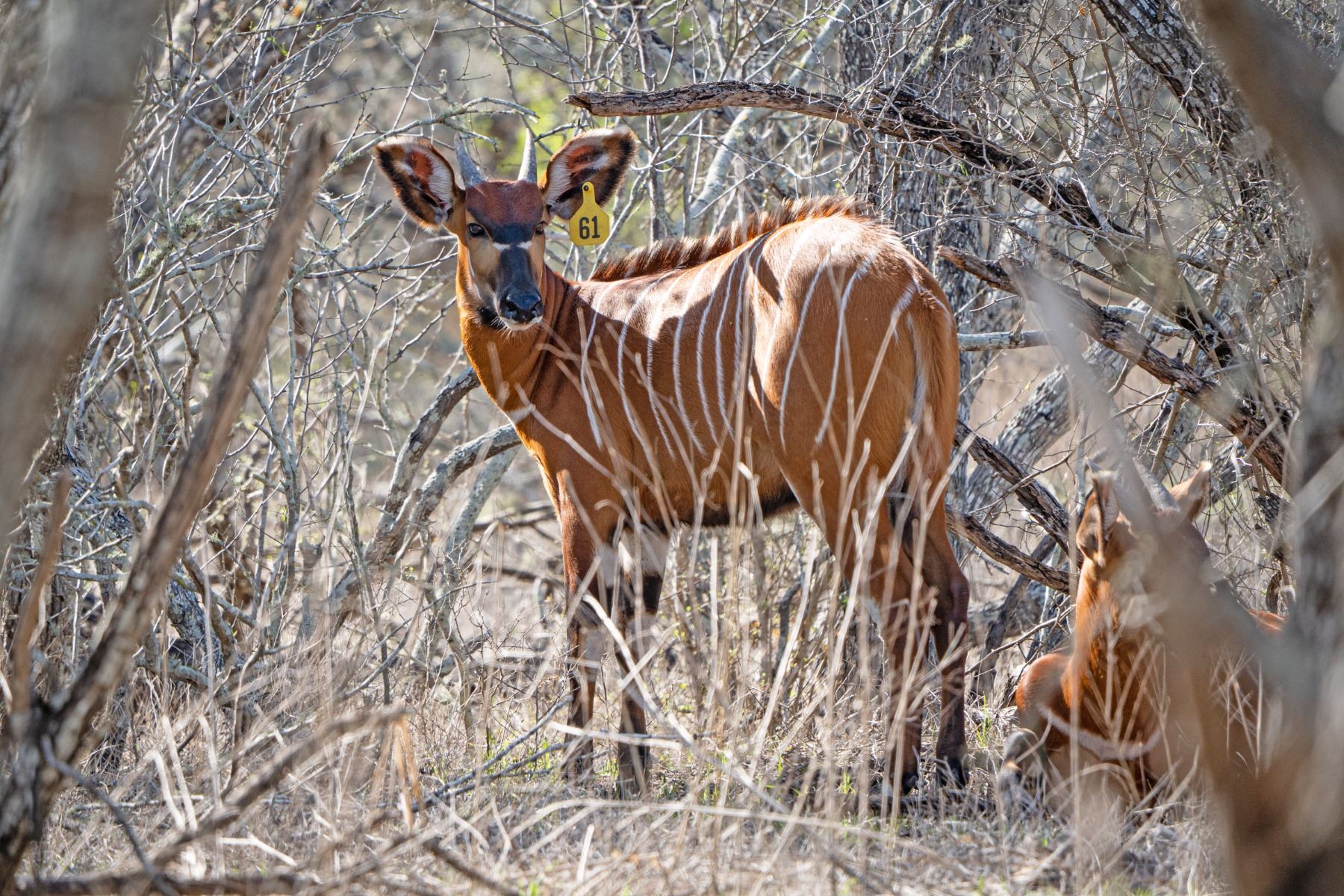 0.1 Yearling Bongo sired by 36" Rocco, Legacy Force Rocco line sire. Raised on 100 acres from our Pettus ranch. Rocco has transitioned to private ownership, these will be some of the final Rocco daughters WLP will have to offer. Tag Yellow 61. This is an exact photo of the animal you will receive. Born 3/2025.