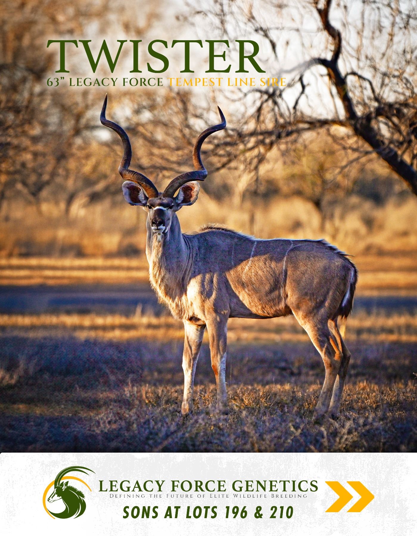 1.0 Kudu born 10/2024 sired by 63" Twister a Legacy Force Tempest Line sire. Pasture raised from our Pearsall ranch. Black tag 23. This is an exact photo of the animal you will receive.
