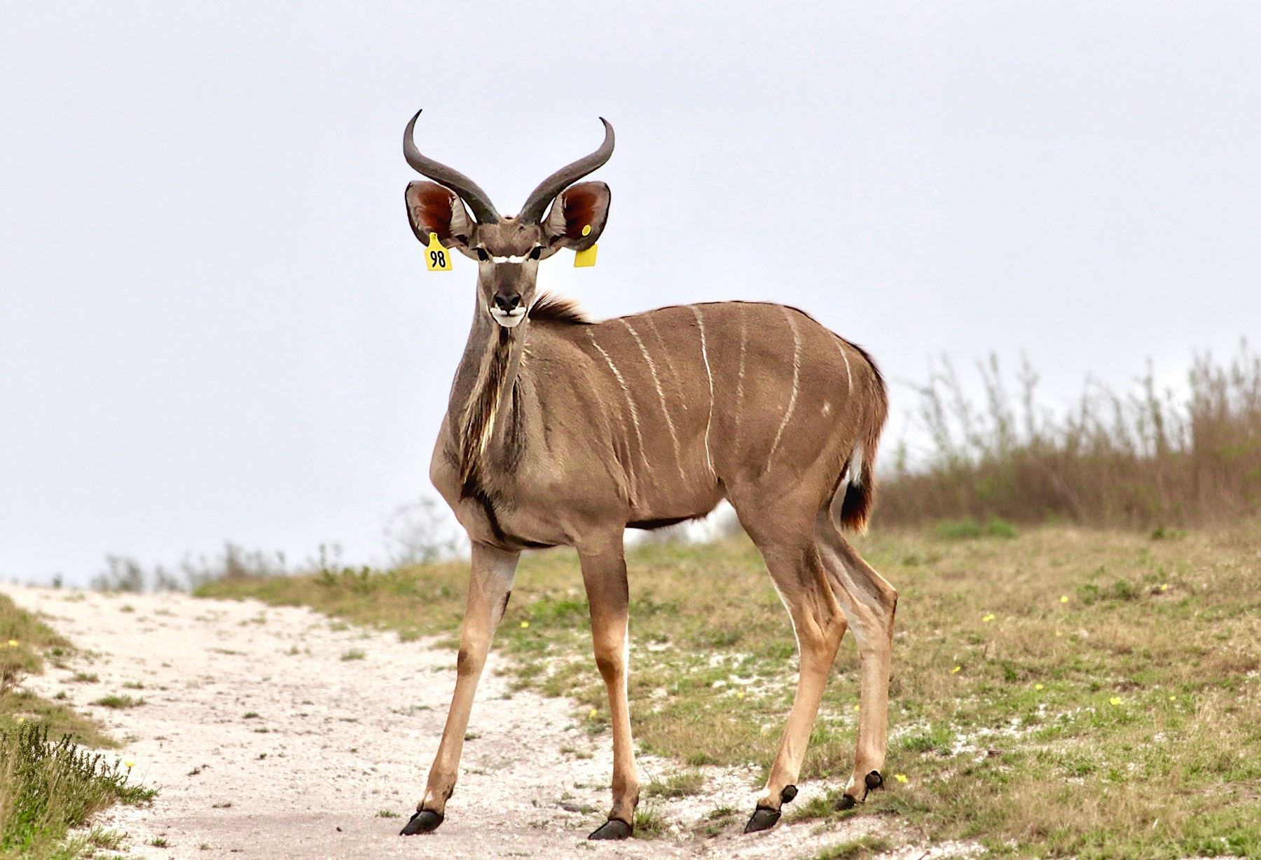 1.0 Kudu grand sired by the late 61"X61" Double Wide, a Legacy Force Span Line sire. Raised on 250 Acres from our Pettus ranch. Tag Yellow 98 born 10/2024. This is an exact photo of the animal you will receive.
