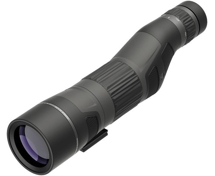 Featuring Leupold's Elite Optical System, it offers excellent dawn-to-dusk light transmission for a bright image when it matters most, elite-level glare reduction in harsh light, and the resolution and clarity that diehard hunters and shooters demand. The straight eyepiece is ideal for glassing downhill or through a truck window. The straight eyepiece is also a bit easier to pack.