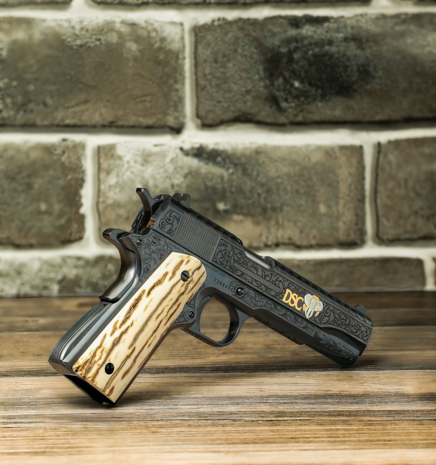 Crafted in partnership with Lipsey's exclusively for the Dallas Safari Club, this limited-edition Colt 1911 in .45 ACP is a true collector's masterpiece - one of only two made. Its hand-engraved blued steel is adorned with elegant gold and sterling-silver inlays, showcasing artistry as timeless as the pistol itself. Genuine mastodon-ivory grips add a striking, natural contrast, making this 1911 not just a firearm, but a work of history and heritage forged for those who Hunt Big. Think Bigger. Christie Selle, christie@biggame.org.