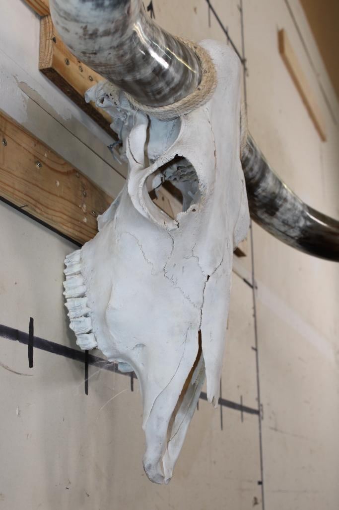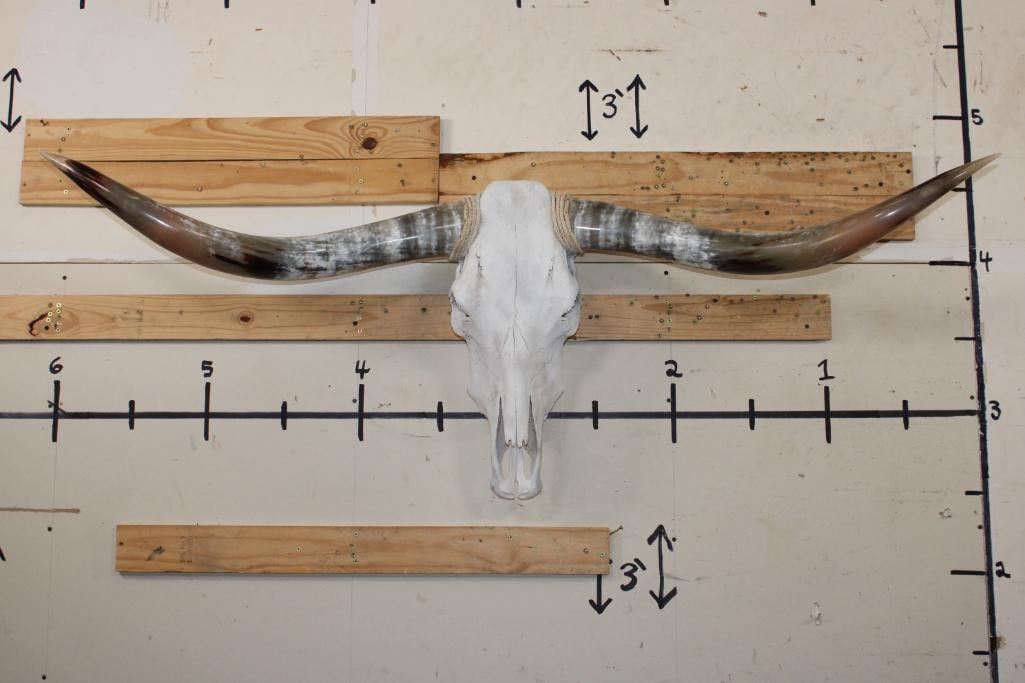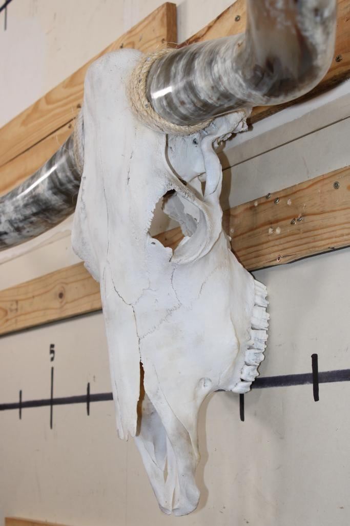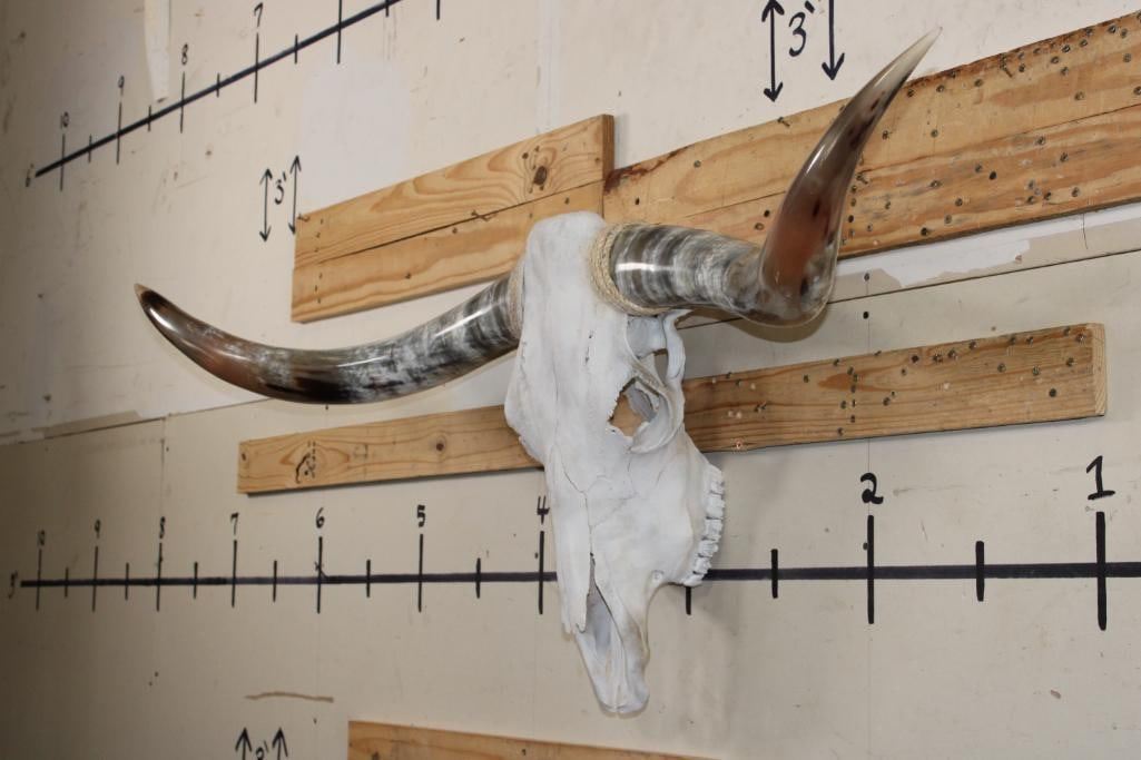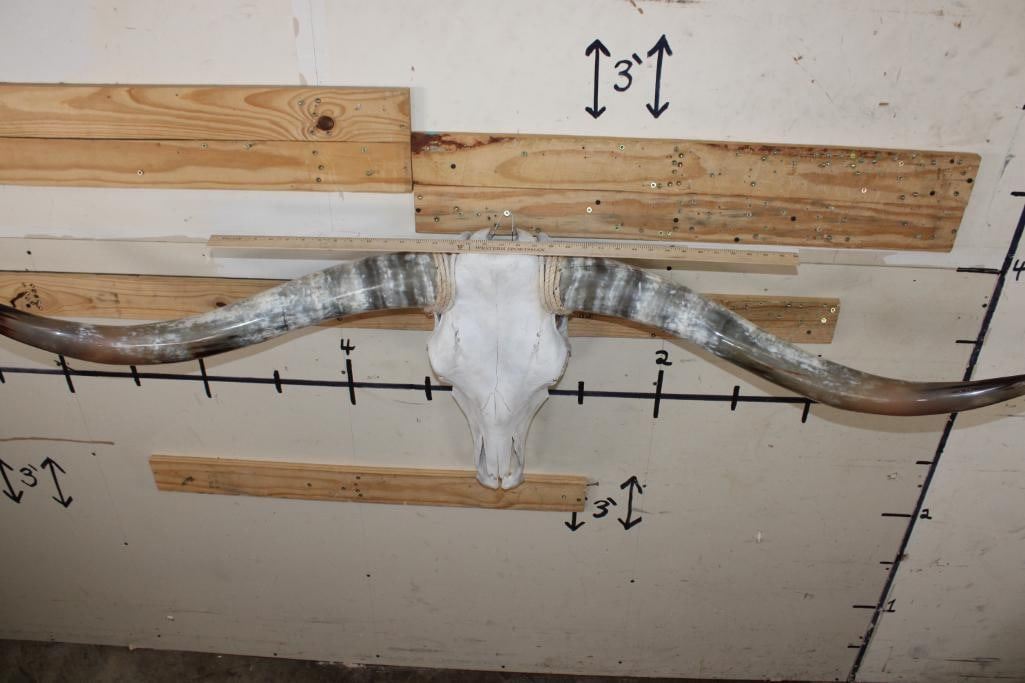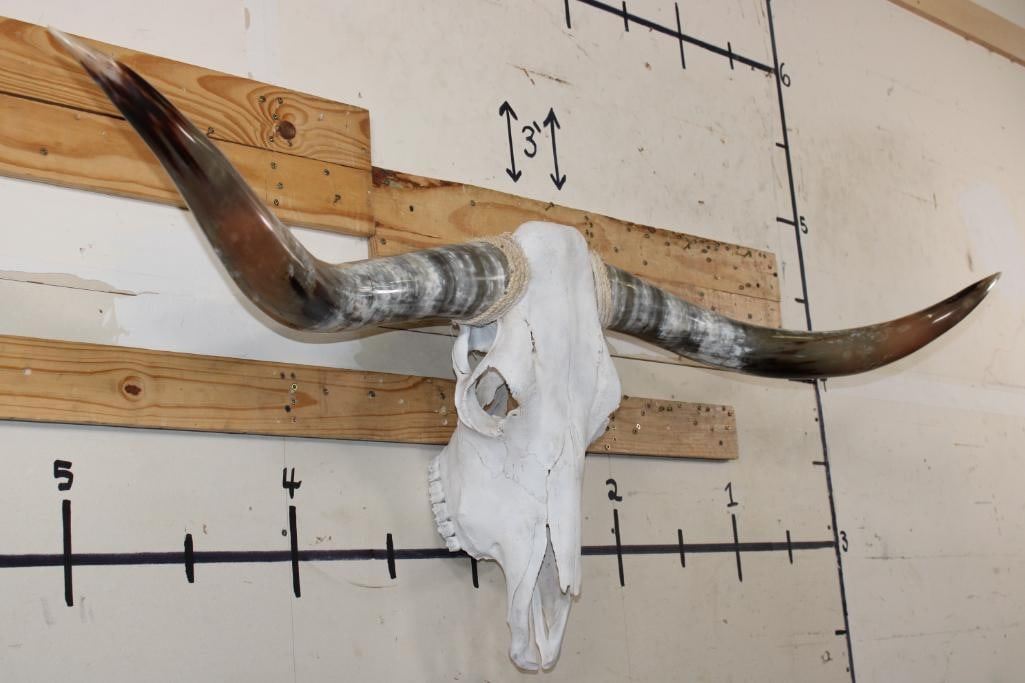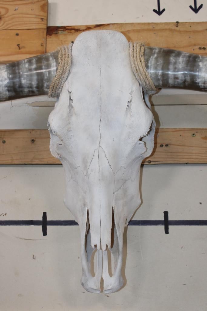 Very Nice LONGHORN Skull with Polished Horns. It has a 64 3/8" Spread, measured from tip to tip. TAXIDERMY
