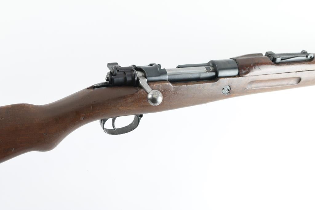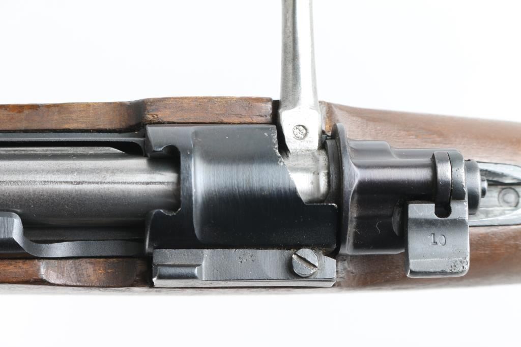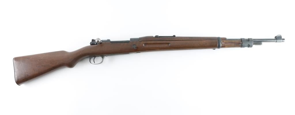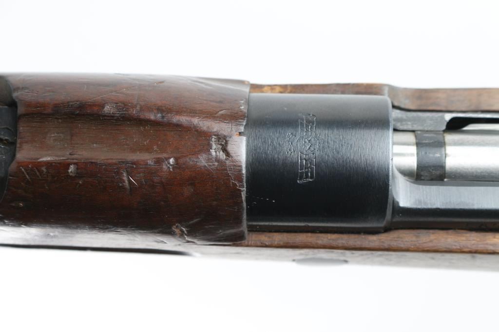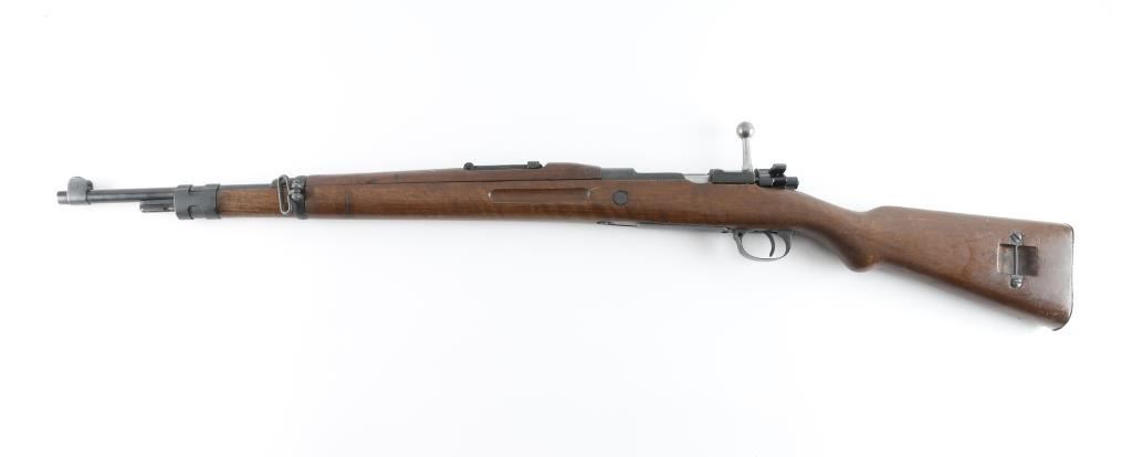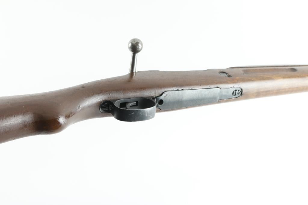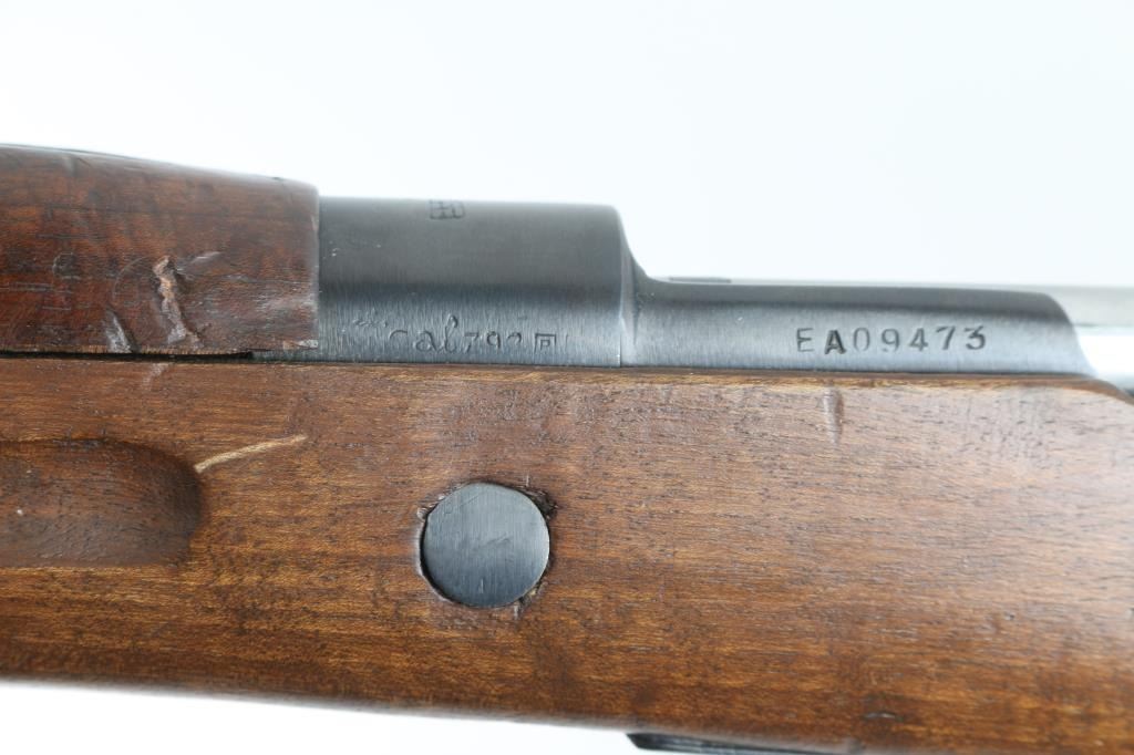 SN: EA09475 Rare experimental Spanish Air Force M43 short rifle, transitional model that led to the M44, circa 1953. Chambered for the 8x57mm Mauser cartridge. Barrel length is approx. 23 inches. Bluing is dark and even with minimal handling marks. Stock is good with ding/dents. Bore is good with sharp rifling. Sling swivels on side. Spanish "Air Force" wings on chamber. No cleaning rod present. No import marks found. Condition is NRA Very Good C&R Firearm