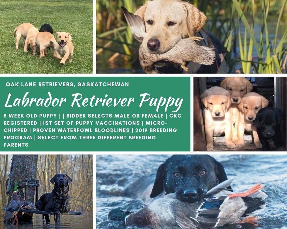 8 Week Old CKC Registered Pup, Bidder selects color, sex, and decides which 2019 litter they want, 1st set of vaccinations, Microchipped, Proven and titled waterfowl bloodlines, select from 3 different breedings $1500 Value Excldued Transportation, pup shipping