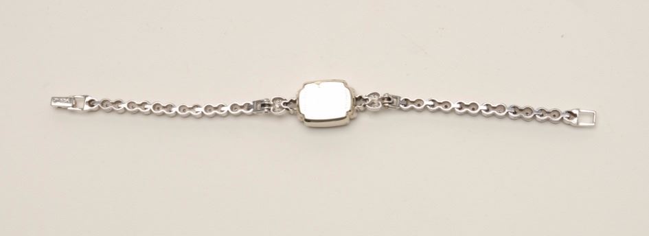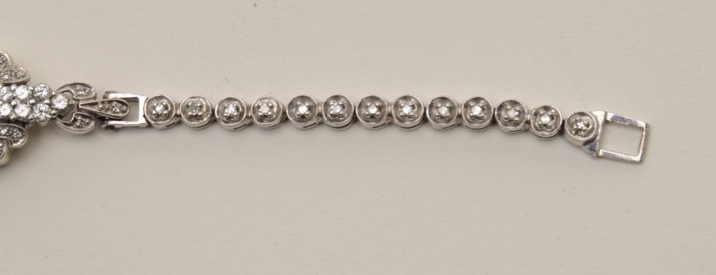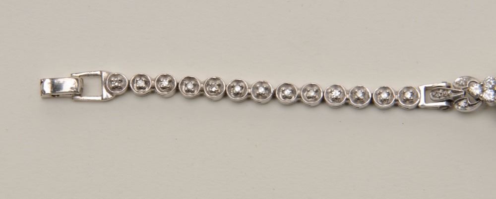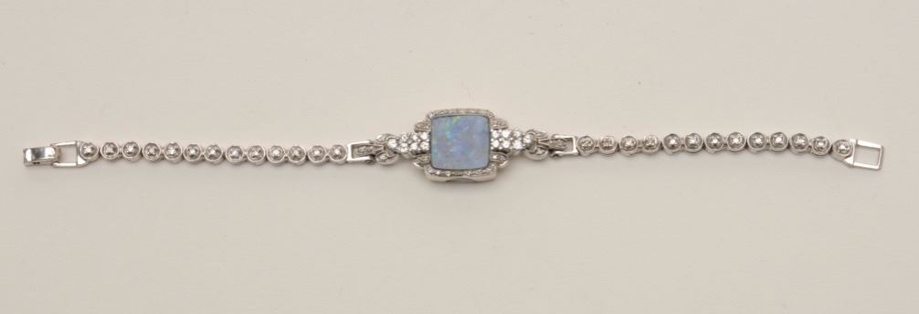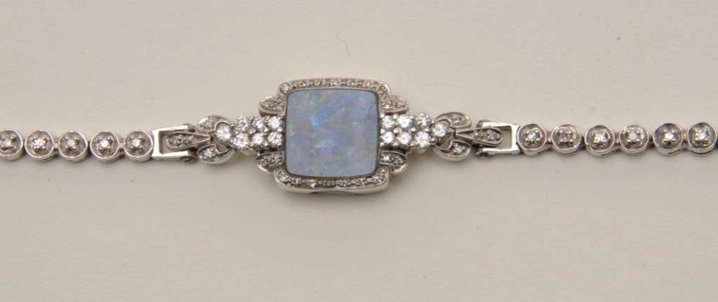 Ladies 14KT whit gold diamond and opal bracelet measuring 7” long. Made from vintage antique wristwatch on custom order. Stunning piece. Est.: $750-$1500